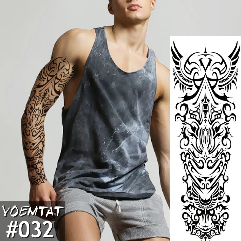 Новинка, 1 шт., временная татуировка, татуировка черного тотема, полный цветок, татуировка на руку, боди-арт, большая, поддельная татуировка, наклейка