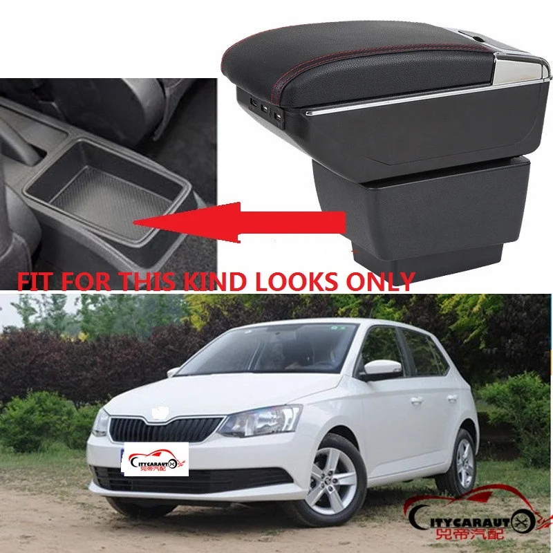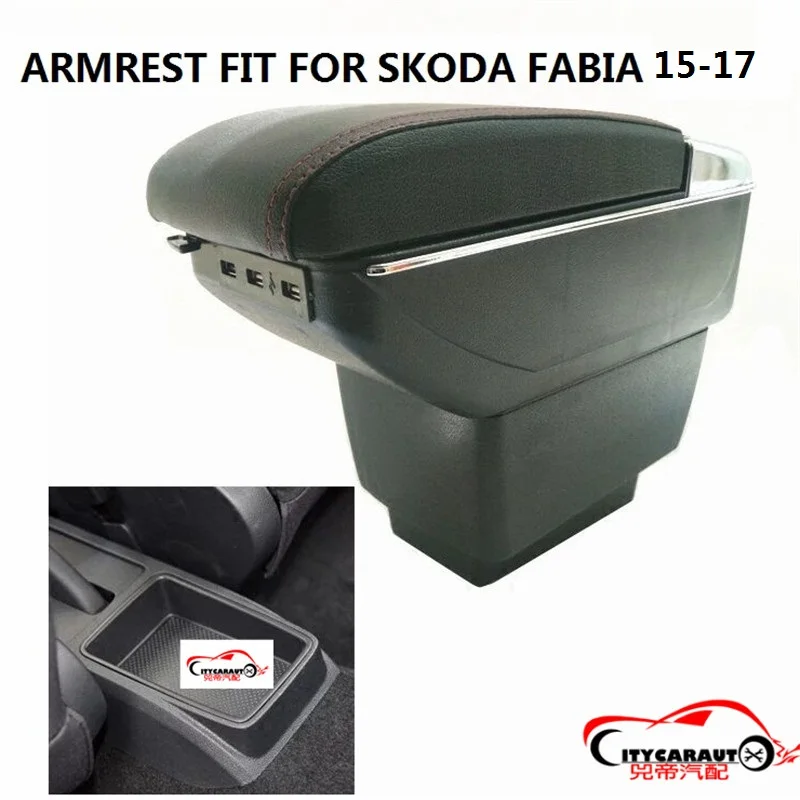 Городской автомобильный подлокотник CITYCARAUTO с большим объемом пространства + роскошный + USB, центральный контейнер для хранения с подстаканником USB, подходит для SKODA FABIA 2015-17