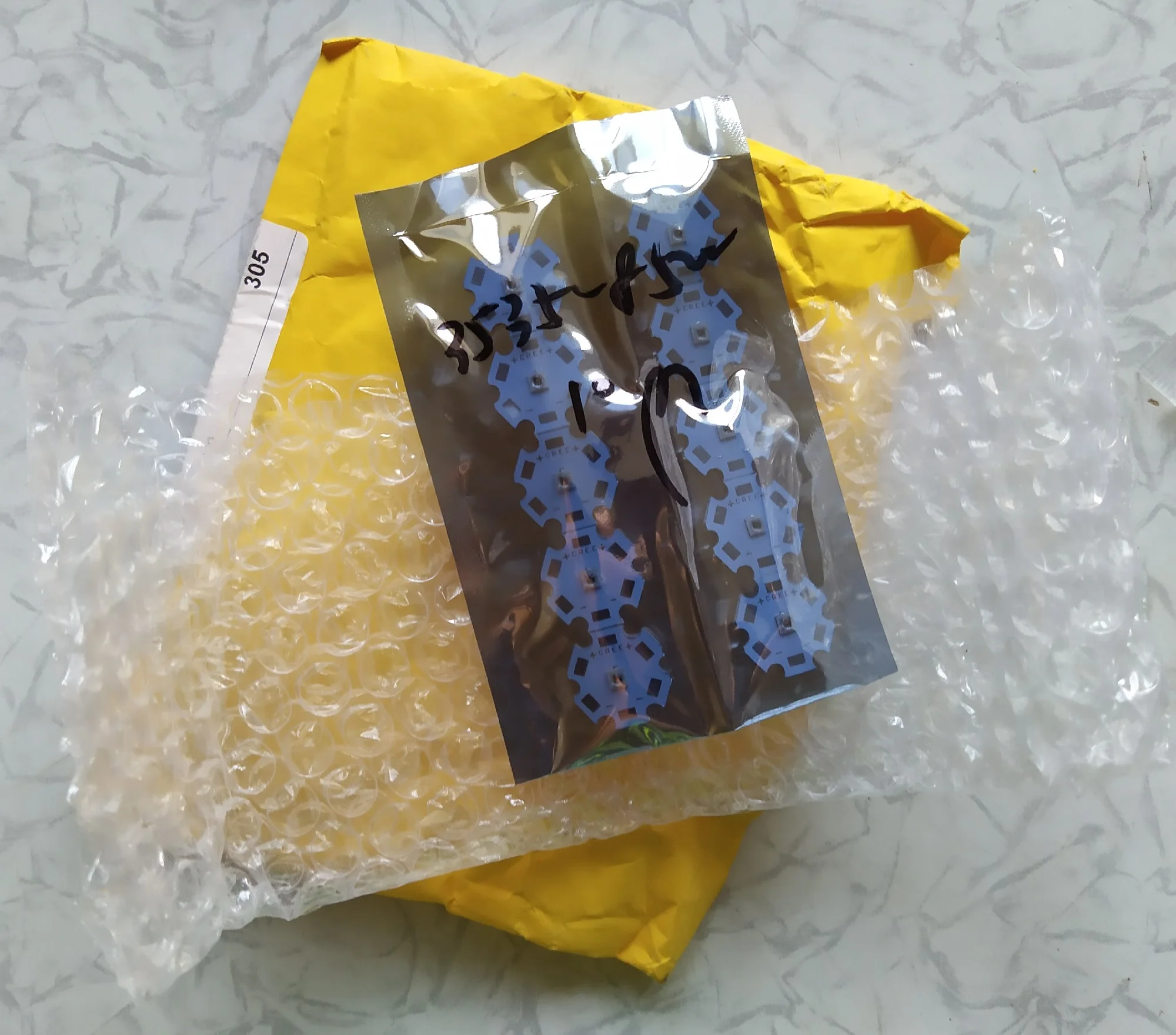 Всё отлично. Проверил, все рабочие. Напряжение питания светодиода около 1,5v. Проверял на токе 350mA, в среднем падение напряжения было 1,46v. По совету, напряжение замерял возле светодиода, что бы исключить падение напряжения на проводах. С прогревом напряжение меняется. Размер светодиода 3,5x3,5mm, размер подложки 20mm, толщина алюминиевой подложки около 1,3-1,4mm. Заказывал для дополнительного ИК освещения камер с объективом "рыбий глаз" и с объективами 1,7-2,8mm. Буду крепить на радиатор (алюминиевый корпус), добавлять линзы и делать ИК прожектор. Ночью глазу их немного заметно, выглядят как маленькие, еле светящиеся красные точки. Товар выслали в течение дня, в антистатическом пакетике, замотанным в пупырку и в пупырчатом желтом почтовом конверте. Товар пришел без повреждений. Количество совпадает. Посылка отслеживалась на всём пути. Доставка заняла 27 дней.