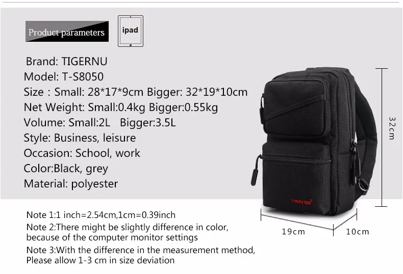 Нагрудная сумка Tigernu Мужская, брендовая, повседневная, брызгозащищенная, для ipad