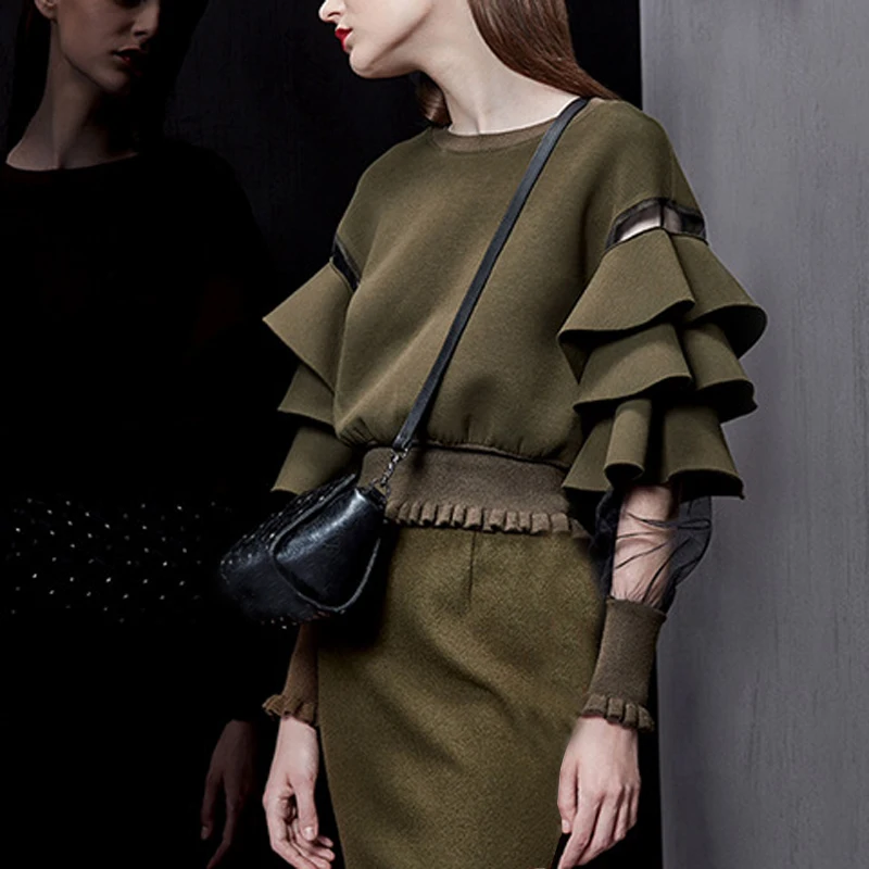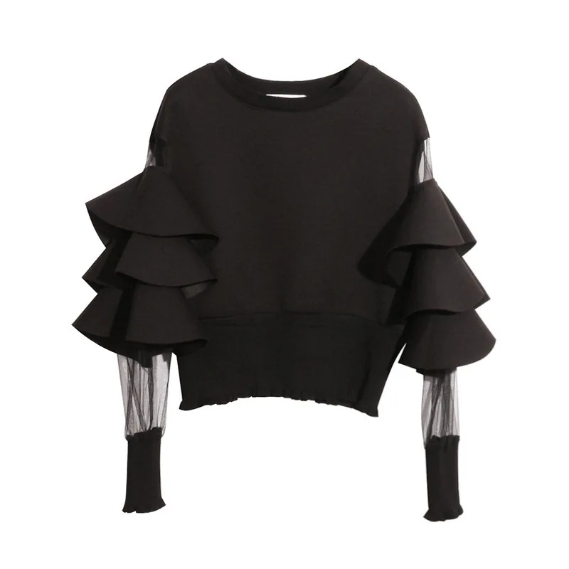 Женский короткий Свитшот TWOTWINSTYLE, осенний, черный пуловер свободного покроя, 2020