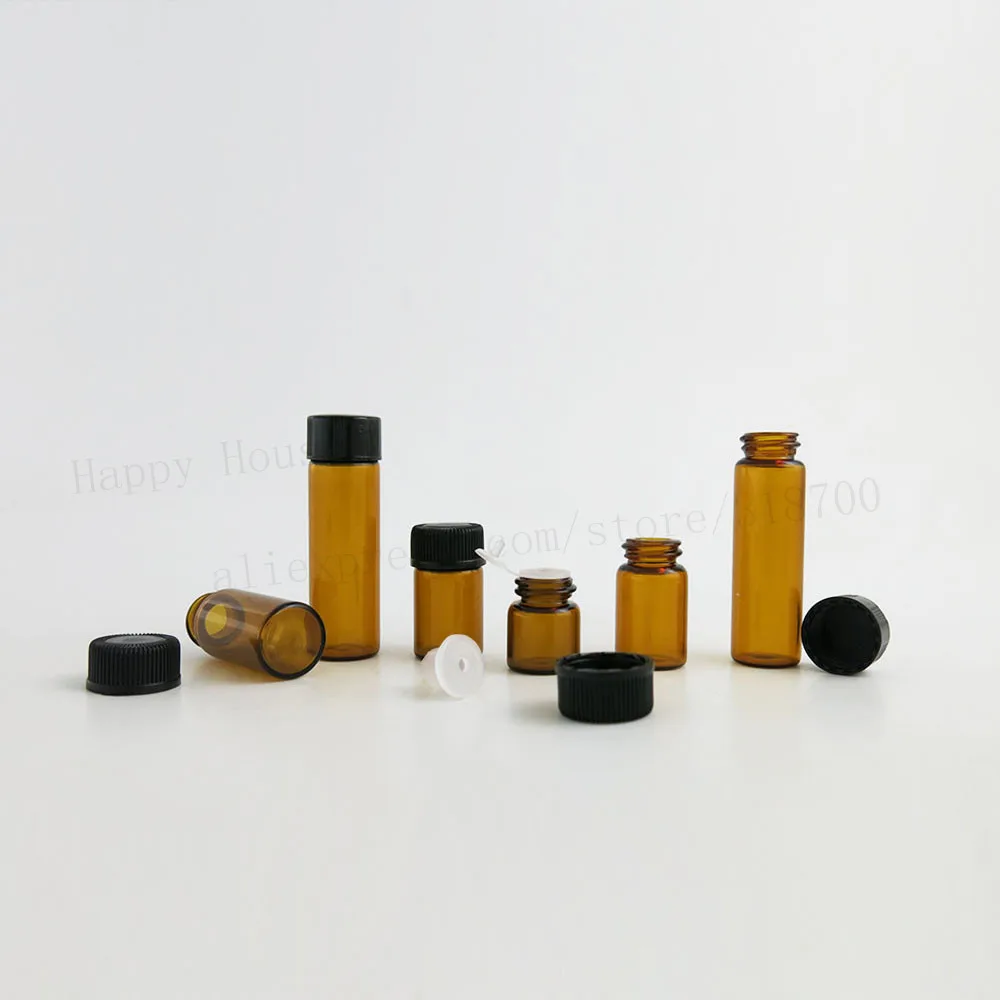 50 шт. x 1 мл 2 мл 3 мл 5 мл маленькая Янтарная стеклянная бутылка для эфирного масла с отверстием для вкладыша редуктор крышка маленькие коричневые стеклянные флаконы