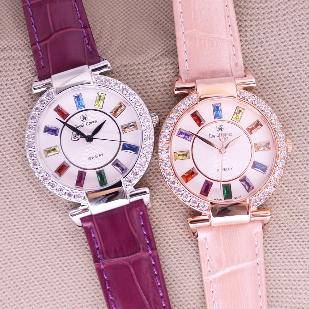 Роскошные часы с зубцами, женские часы, модные часы, браслет, Красочные Стразы, подарок на день рождения, Королевская корона, коробка