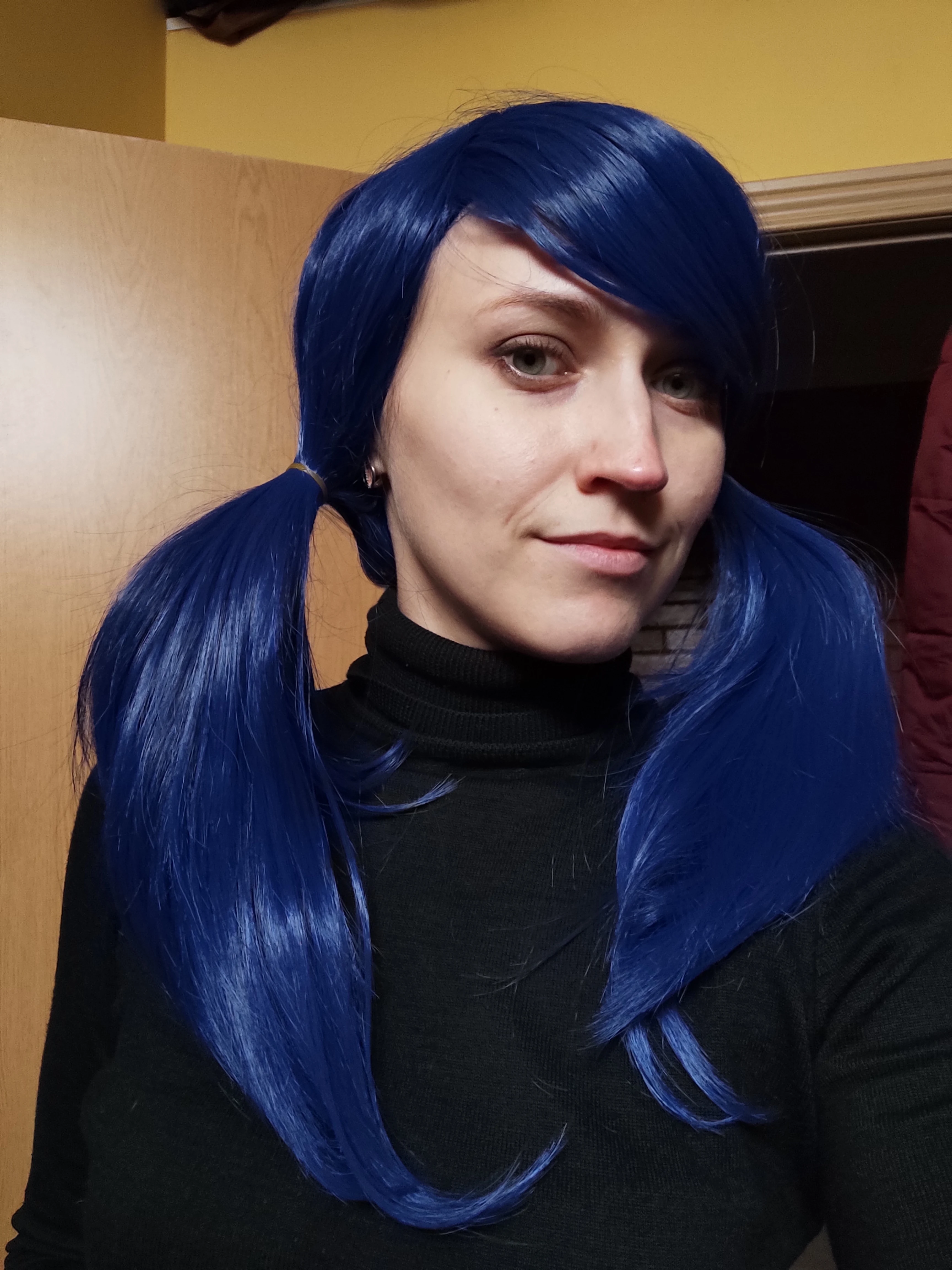 Парик с оттенком темно-синего цвета. Немного темнее, чем маринетт, но густой мех, хорошее качество и цвет очень милый.