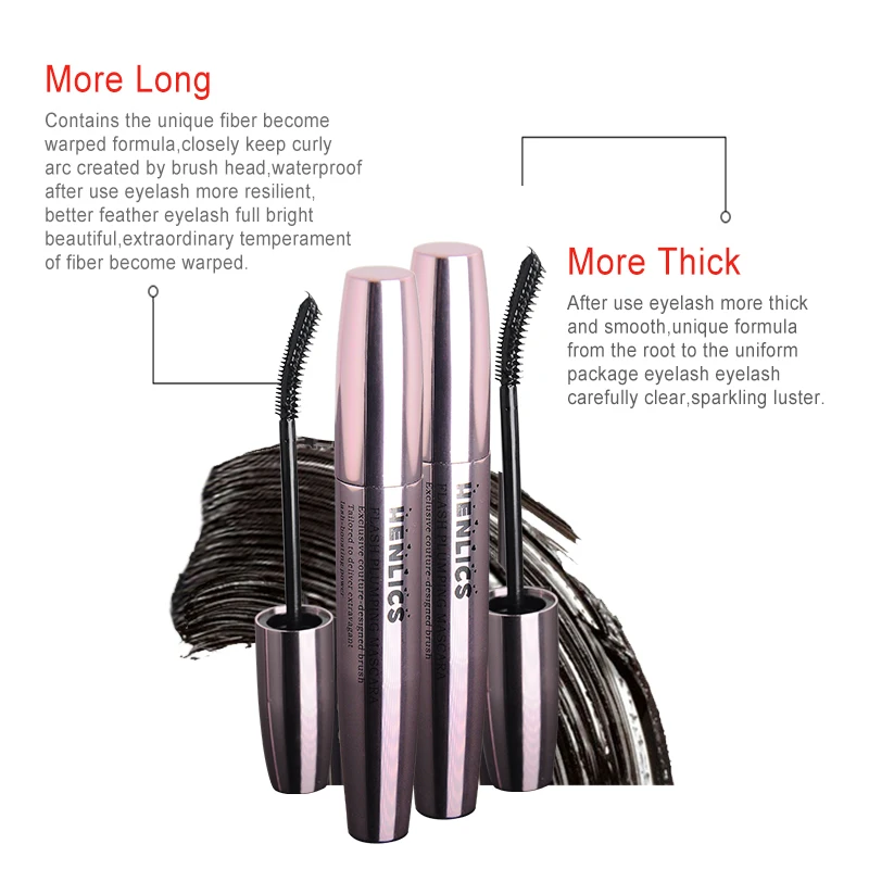 HENLICS 4D Тушь для ресниц, Удлиняющая Объем, наращивание ресниц, кисть для ресниц, красота, макияж, водостойкая косметика Rimel
