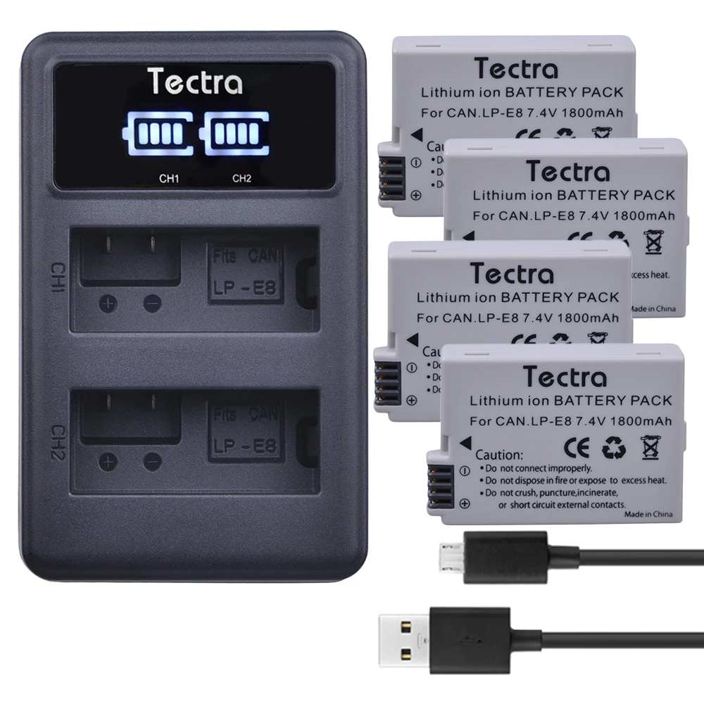 Tectra 4x1800mAh LP-E8 LPE8 LP E8 литий-ионный аккумулятор для камеры+ Светодиодный usb-дисплей с двойным зарядным устройством Для цифровой однообъективной зеркальной камеры Canon EOS 550D 600D 650D 700D