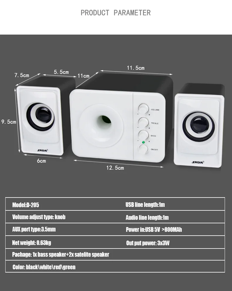 Компьютерный динамик SADA D-205 2,1 с сабвуфером-лучший выбор для музыки, фильмов, Мультимедиа ПК и игровых систем