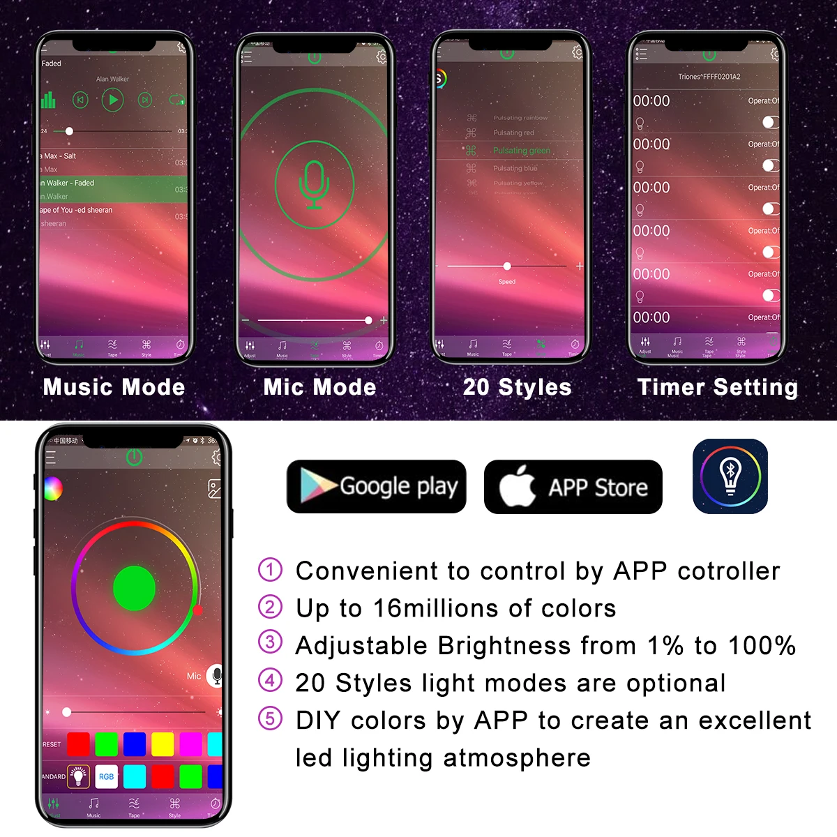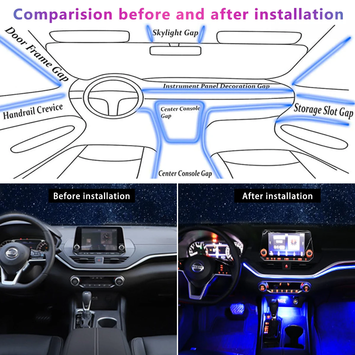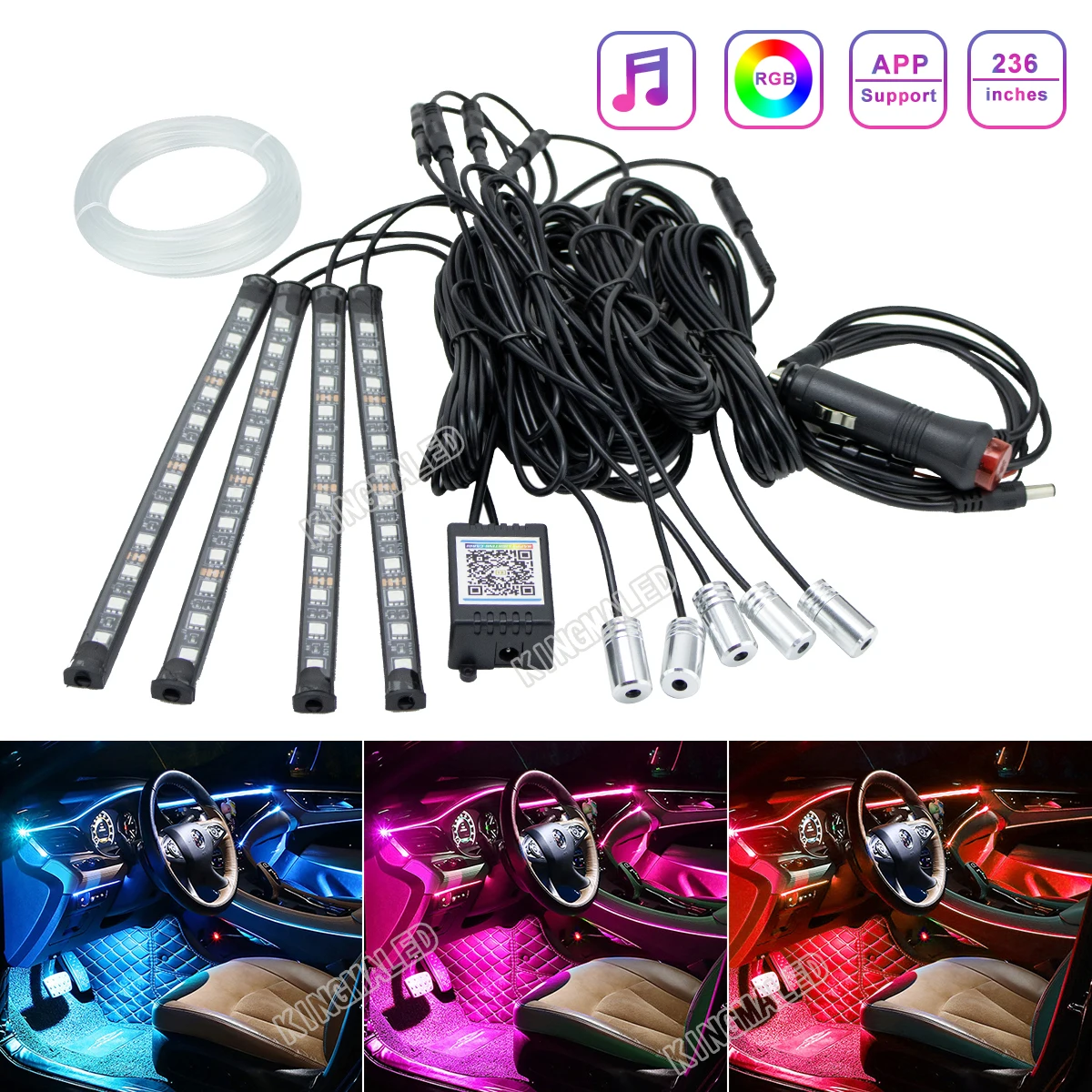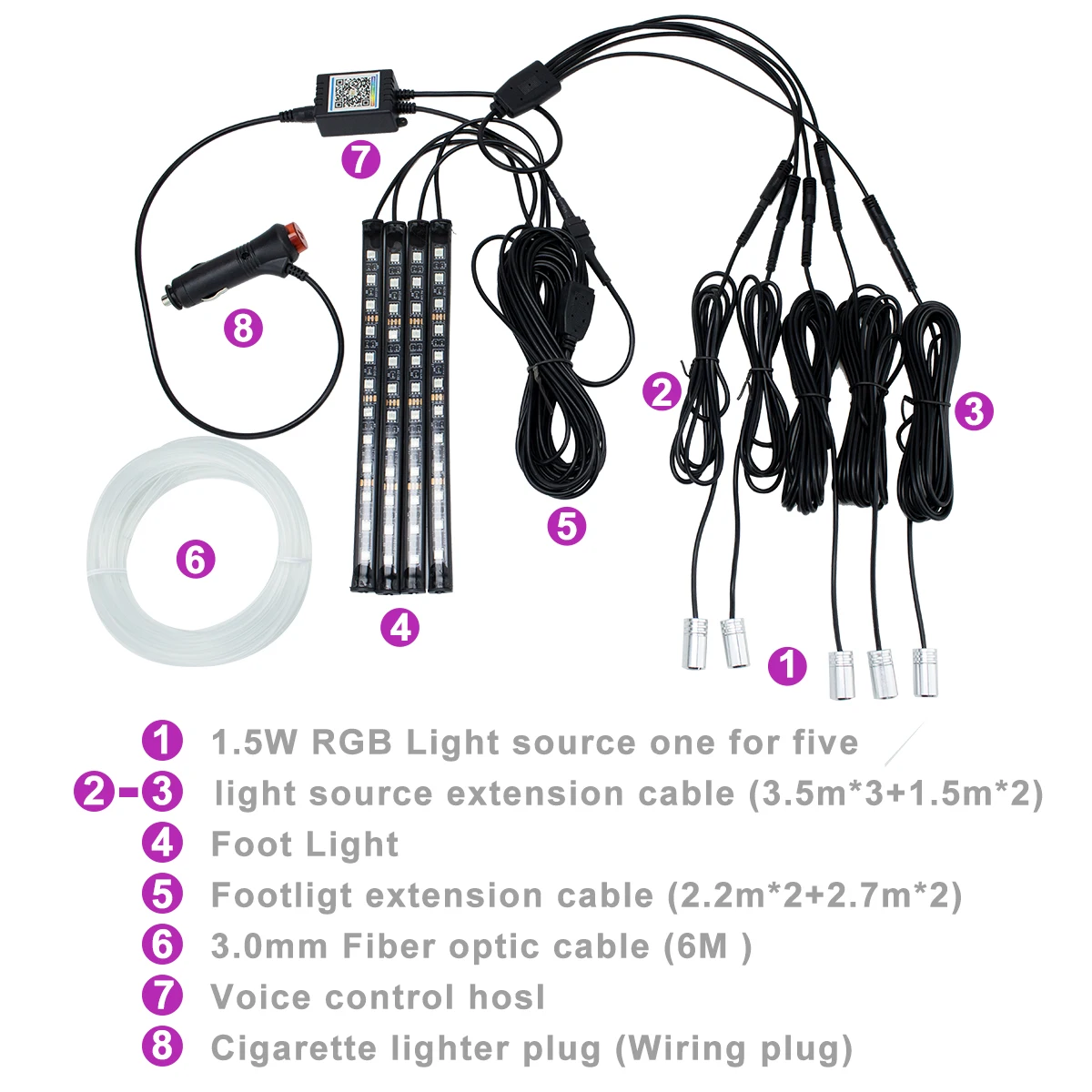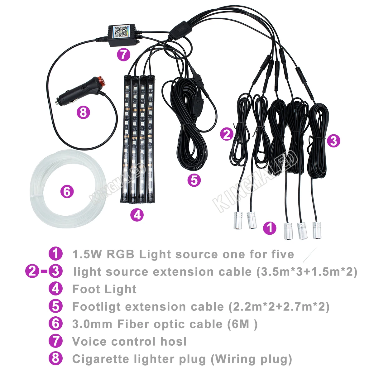Универсальный RGB-светодиод, 3 Вт, 5 в 1, кабель 6 м, разноцветный RGB-волоконно светодиодный оптический светодиодный светильник с управлением через приложение, автомобильные декоративные атмосферные лампы
