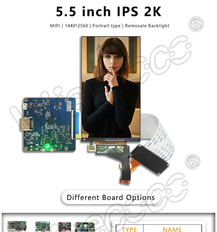 Дисплей Wisecoco LS055R1SX04 5,5 "2K IPS ЖК-экран 2560x1440 TFT ЖК-панель + плата контроллера mipi Съемная подсветка