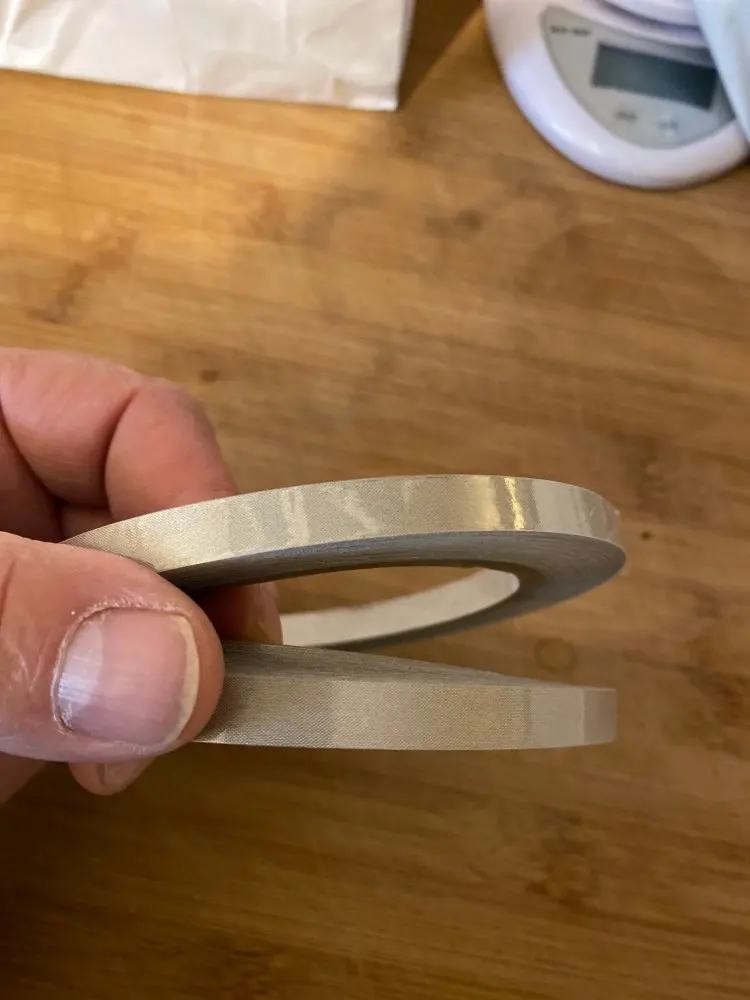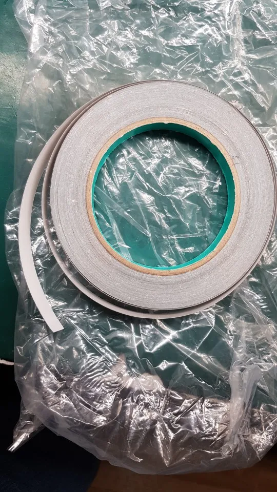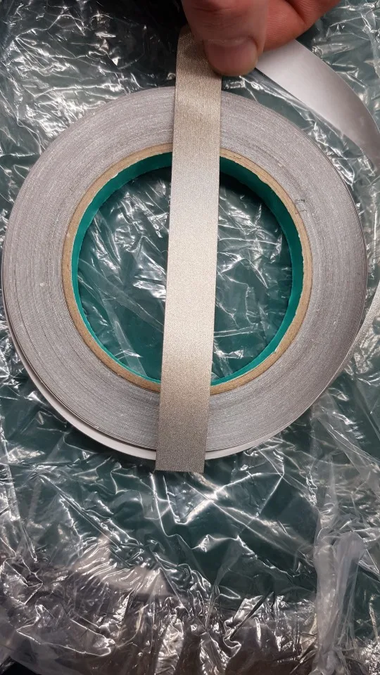 Отличная тканная лента. Очень тонкая, достаточно прочная, не слипается намертво при случайной перекрутке, при этом к поверхностям липнет замечательно. Сопротивление для 10мм ширины около 3 Ом/м. Использую в качестве нагревателя для обогрева руля - то что нужно.