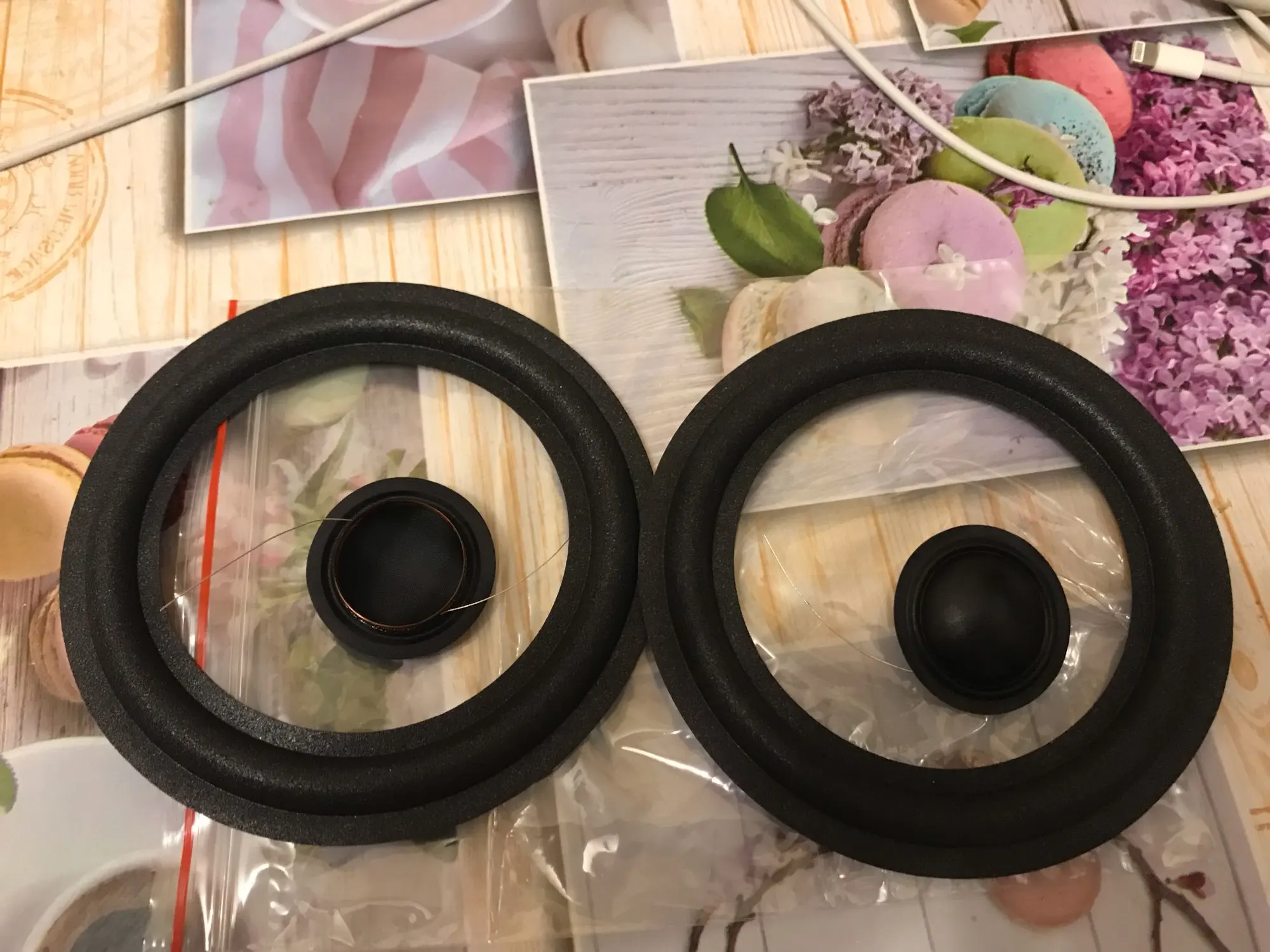 Пришли за 15 дней с другими посылками. Сперва не понял, что это вообще такое, по упаковке в которой нащупывалась круглая коробочка как с конфетами))) Потом прифигел когда достал, но коробка очень прочная, волноваться не стоит. Просто в другом магазе брал до этого, там коробка была солидная картонная и большие прослойки пенопласта, но диффузоры вч были залиты клеем как раз по краям, матюкался 3 часа пока шкрябал обезжиривателем клей, Hifidiy Live был магаз, взял тут теперь заценим качество... Ну внешне тут тоже обмотка в жирных каплях клея и на одной диффузор где контакт выходит, опять тереть... Большие зазоры под обмоткой на стыке кольца, оно не сплошное... Запах от них советского залежавшегося в сарае радио. Звук опишу во втором отзыве.