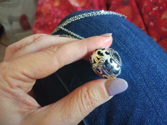 Ожерелье миленькое, немного больше, чем представляла, но мне очень понравилось, длина цепочки 60 см. Внутри светящийся шарик, замочек работает. Продавцу спасибо, рекомендую .