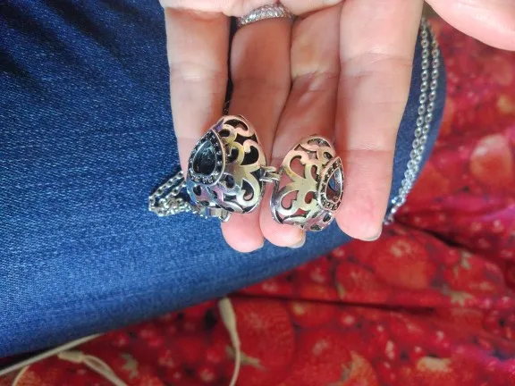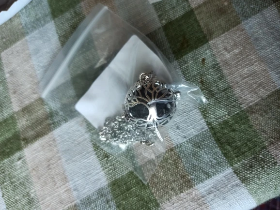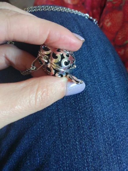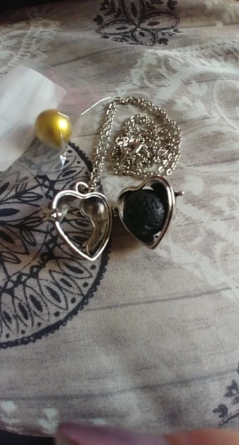 очень красиво. даже лучше, чем на картинке. кулон по форме сердечка - замочек не смогла открыть пальцами. только с помощью отвёртки подцепить. при этом ощущение, что лишнее движение может сломать тонкие соединения в замочке и с противоположной стороны, где сгиб. теоретически, этот замочек можно и не открывать. можно масло капнуть на камень прямо через кулон. цепочки с разными кулонами разной толщины. в общем мне нравится. очень красиво.