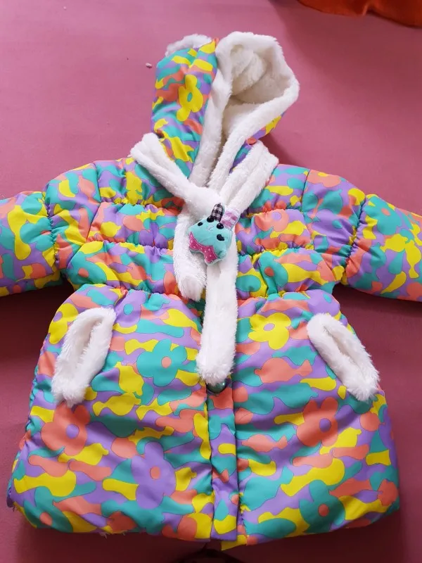 Куртка с единорогом для мальчиков и девочек, верхняя одежда с хлопковой подкладкой для малышей, зимняя одежда для младенцев