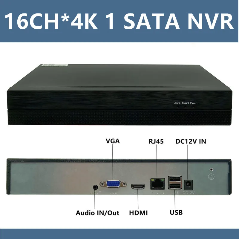 Сетевой цифровой видеорегистратор 16 каналов * 4K H265, IP-камера ONVIF 1SATA Max 12 ТБ, адаптер питания VMS XMEYE P2P с датчиком движения