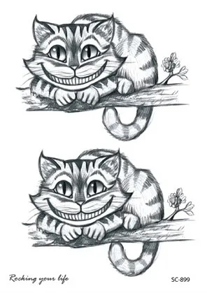 Водостойкая Временная тату-наклейка Алиса в стране чудес Чеширский кот Смеющийся милый фальшивый тату флэш-тату для девочек и мужчин