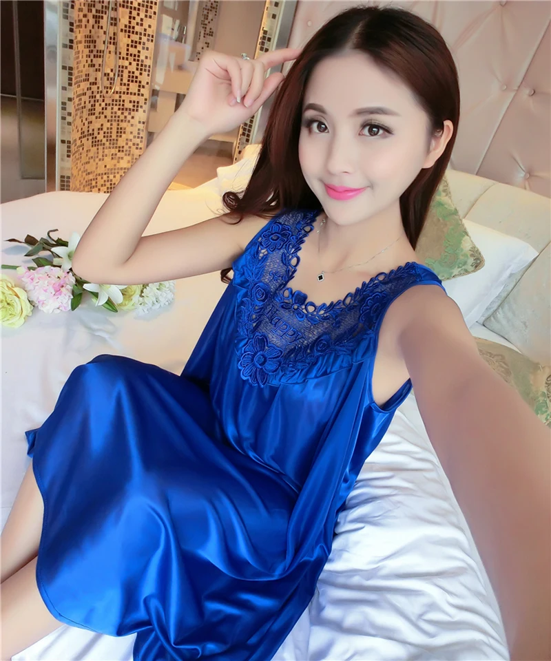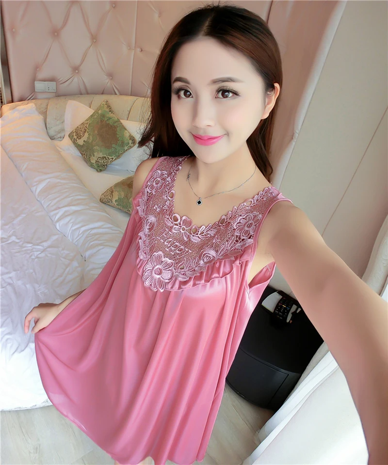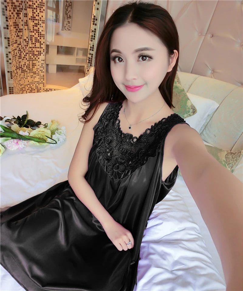 Размера плюс 4XL Женская шелковая одежда Ночные рубашки женские пикантные кружевные пижамы летние Ночные рубашки без рукавов для девочек