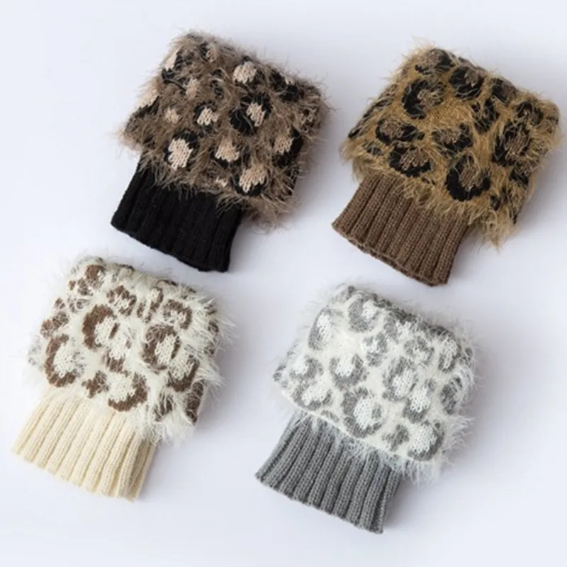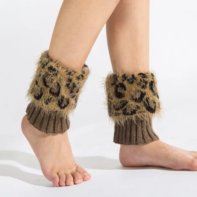 Женские вязаные гетры из искусственного меха, леопардовые носки для ботинок, вязаные гетры с манжетами, зимние теплые гетры для женщин
