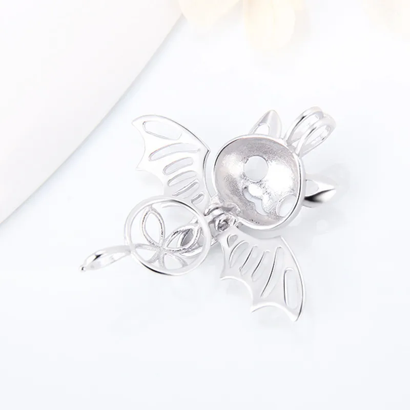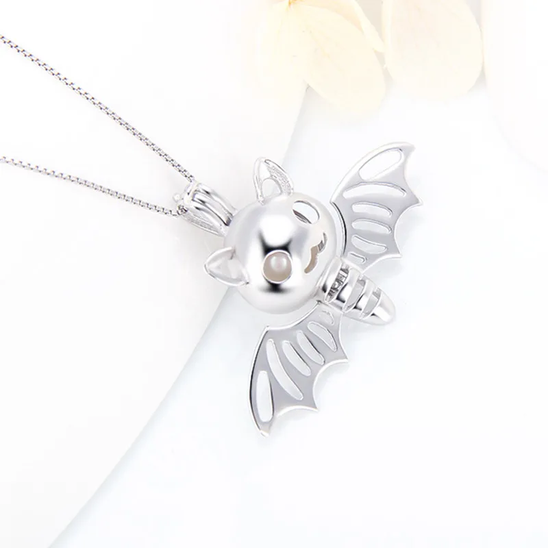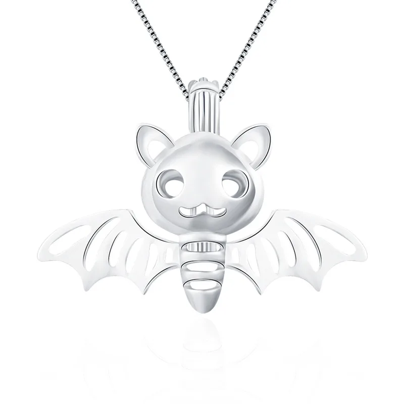 CLUCI Серебро 925 женщин Подвески кулон ювелирные изделия страшная улыбка летучая мышь в форме клетки кулон для Хэллоуина жемчужный медальон клетки SC140SB