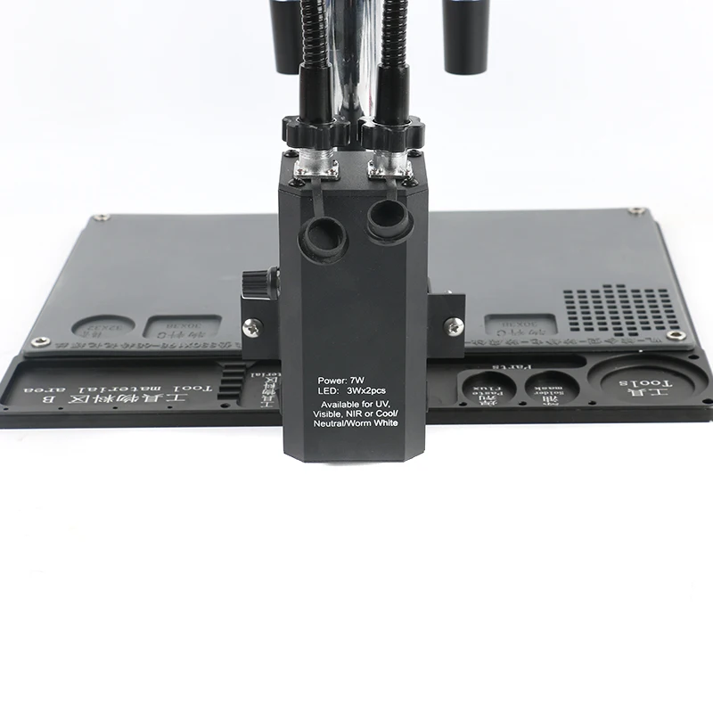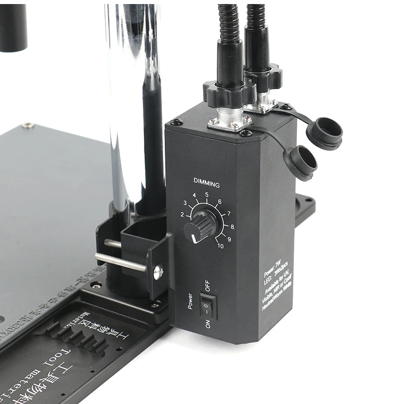 Лампы 3 ватт каждый (6 ватт в общей сложности) с полностью регулируемой интенсивностью. Идеально подходит для равномерного освещения образца без нагрева. Этот светодиодный светильник высокой интенсивности отлично подходит для всех применений, включая биологическое и электронное применение.
