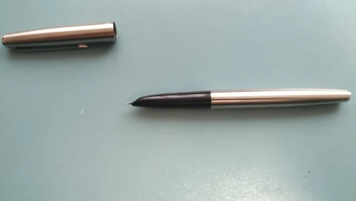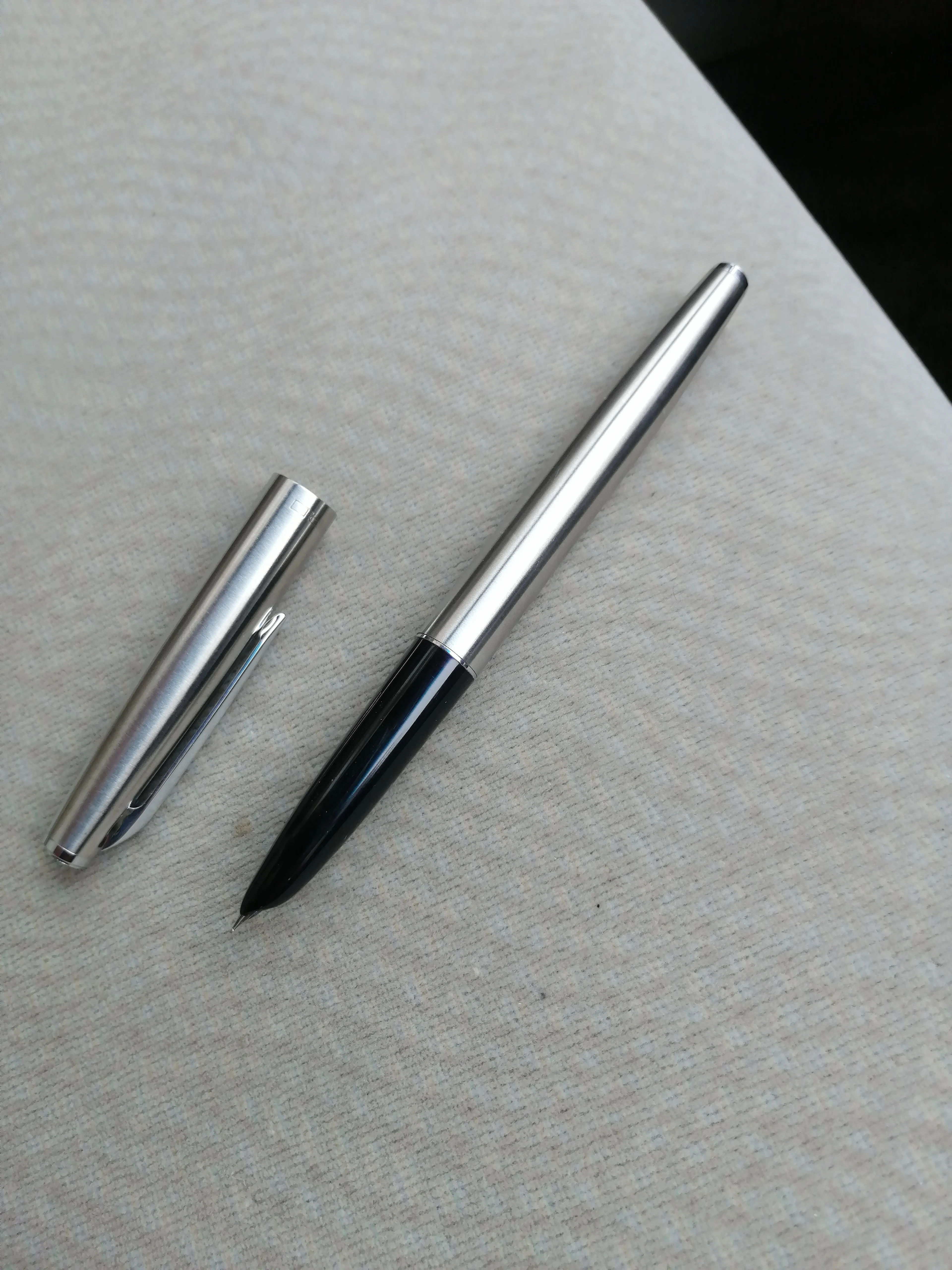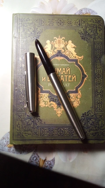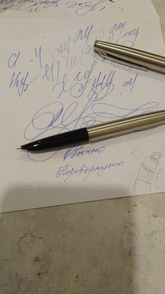 Ручка за свою цену хороша. Пишет тонко, особенно обратной стороной, не цепляется. Но шлифованный тонкий звенящий метал меня не возбуждает, ощущения неприятные, зато вес небольшой. Место под пальцы жёсткое, без резинки. Колпачок держится на четырёх изогнутых пластинках внутри. Заправлял пока один раз, пришлось сильно окунуть в чернила чтобы они начали набираться. Доставка долгая была, два месяца, и почта не уведомила о прибытии, получил вместе с другой посылкой когда спор уже хотел открывать.