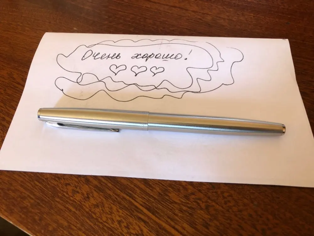 Я проверил полученную чернильную ручку. Эта ручка хорошо пишется.