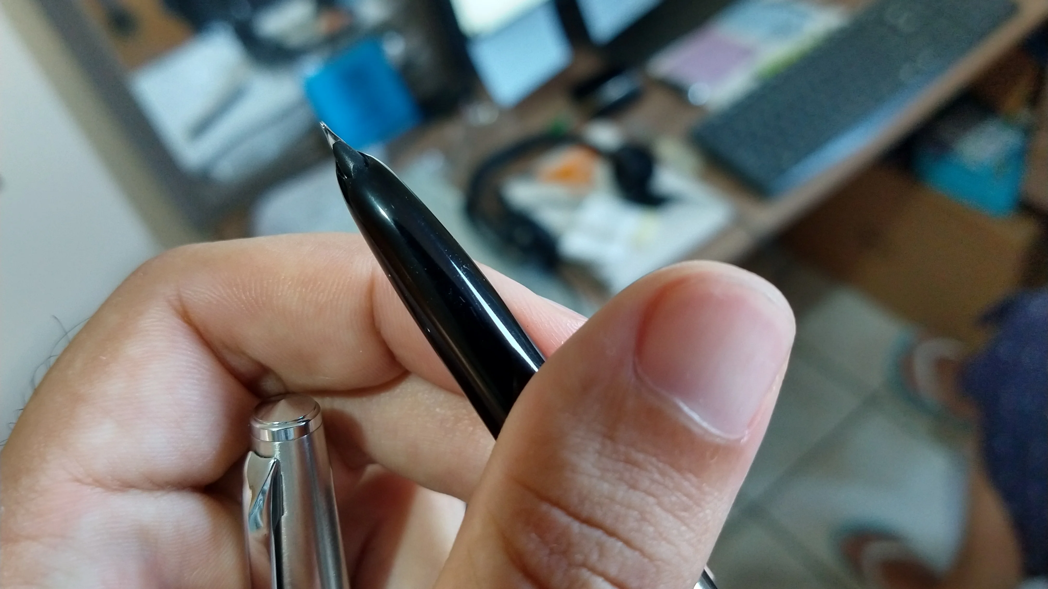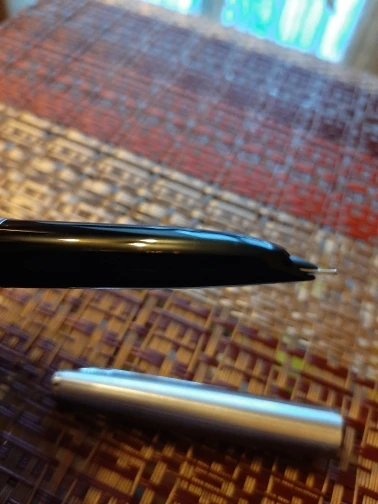 Хорошая ручка, но записывает действительно тонкие линии. Не уверен, что чернила, которые я использовал, были нехороши (синие), но мне нужно было немного открыть наконечник, чтобы он был удобен во время письма. Это было для «scatchy», как он есть. Сейчас написан хорошо, но если посмотреть на фотографии, вы заметите, что стоки больше не на 0,38 мм. На картинке я использовал черные чернила от того же продавца.