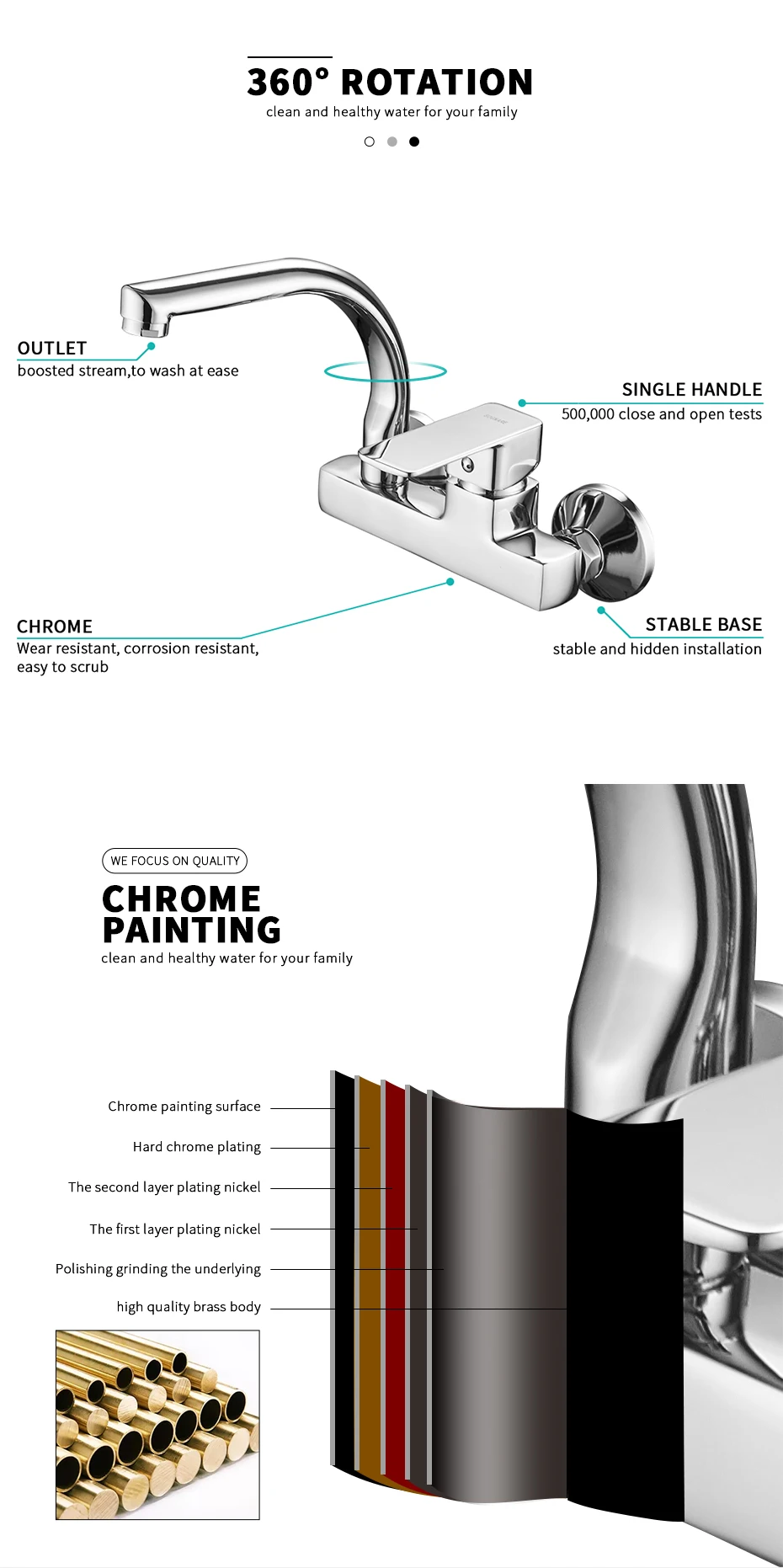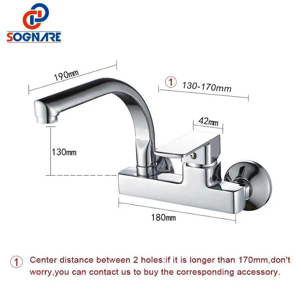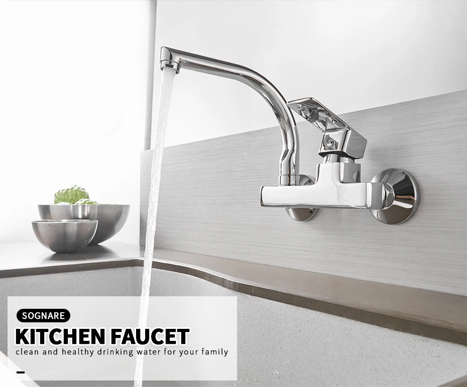 SOGNARE настенный кухонный смеситель с одной ручкой, кухонные смесители с двумя отверстиями, кран для горячей и холодной воды с вращением на 360 градусов D2203