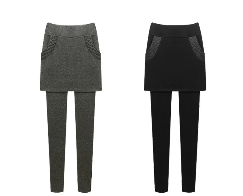 Зимние бархатные плотные облегающие леггинсы, брюки, Женская юбка + длинные брюки, большие размеры 4XL 5XL 6XL, теплые юбки, брюки для женщин