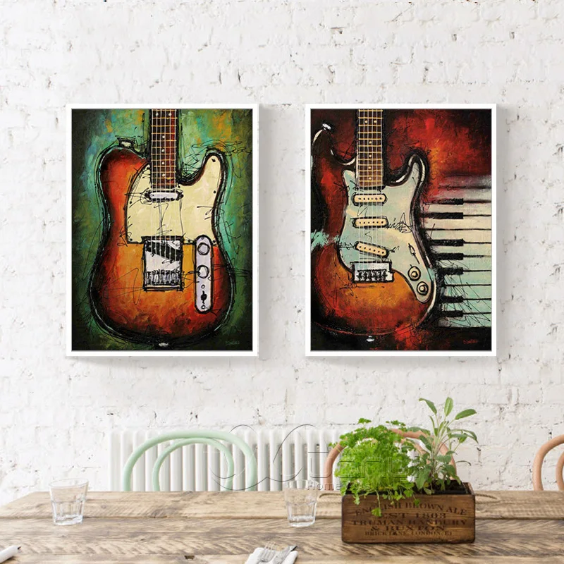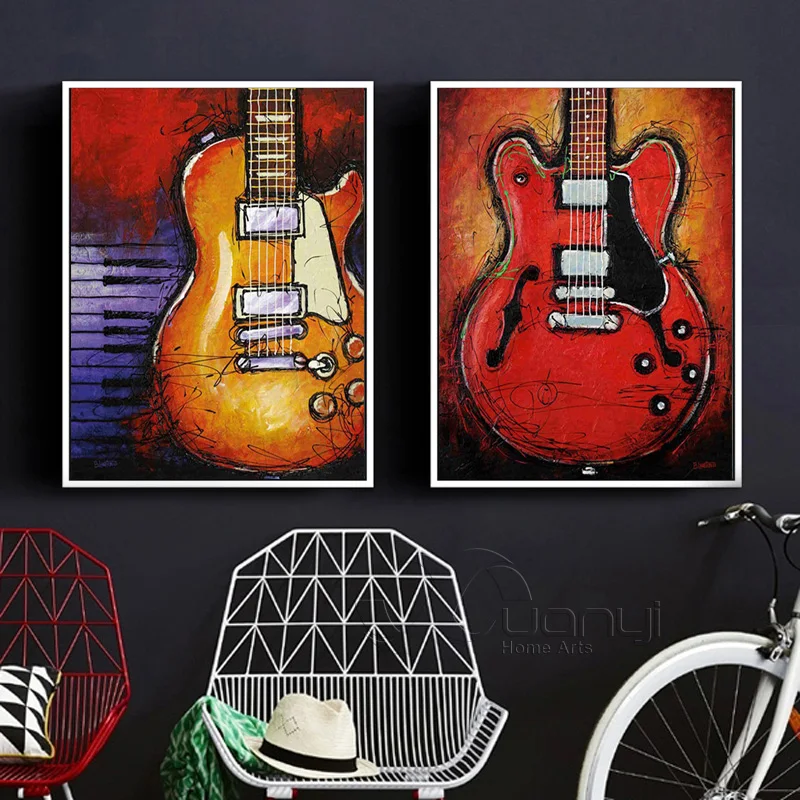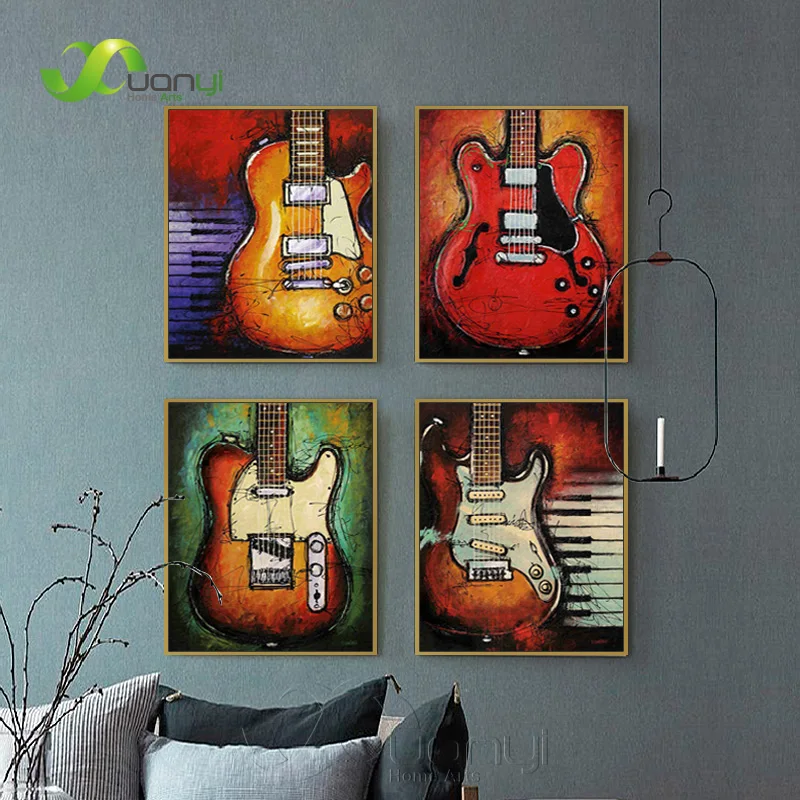 Абстрактная гитара, 4 панели, холст, печатные картины, искусство музыкальных инструментов, картина, Настенный декор, картины для гостиной