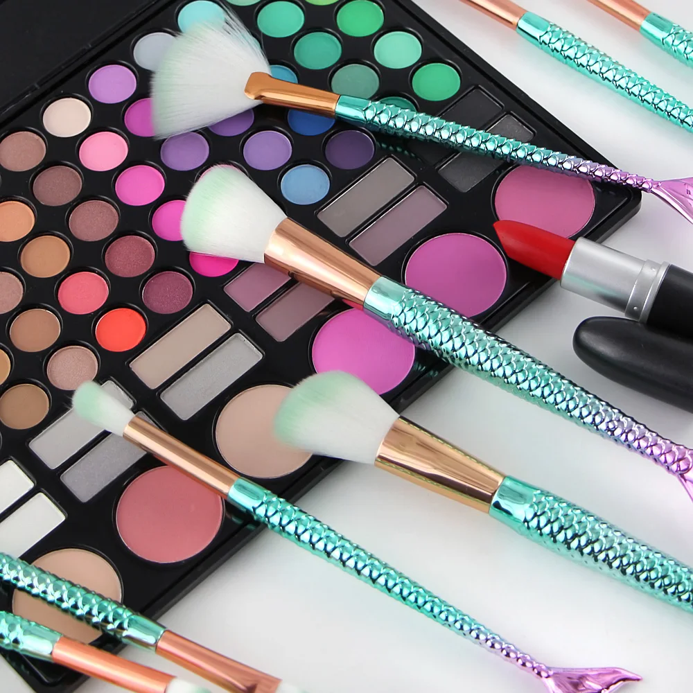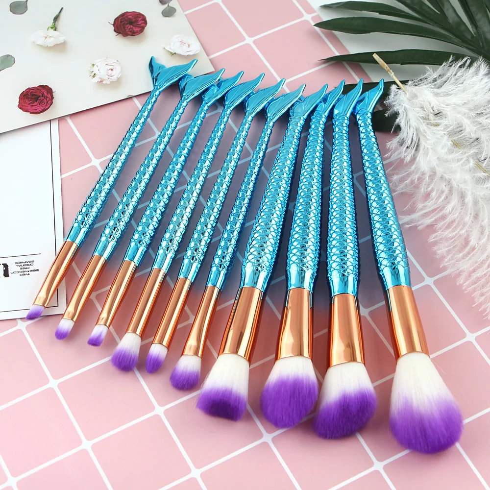 Профессиональные кисти русалки, маленькие рыбки, Pincels Maquiagem, контурная Кисть для макияжа, Тональная основа, пудра, брови, Pincel Sereia, кисти
