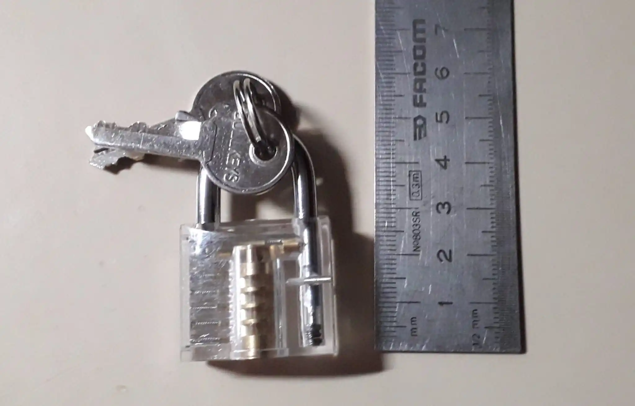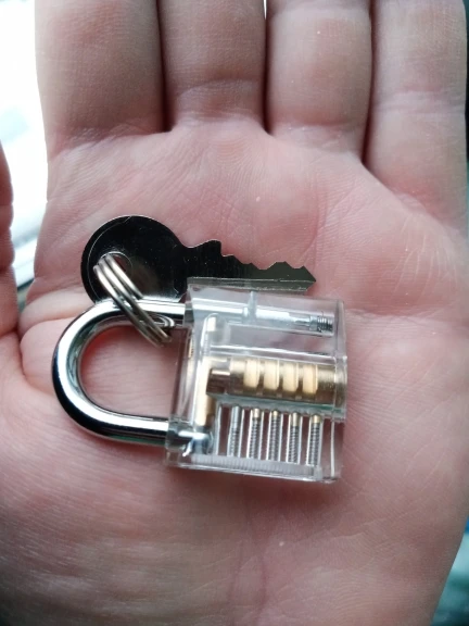 думал замок побольше будет. благодаря тому что он прозрачный, открыл его отмычками за 3 минуты, не имея никаких навыков. вслепую гораздо сложнее.