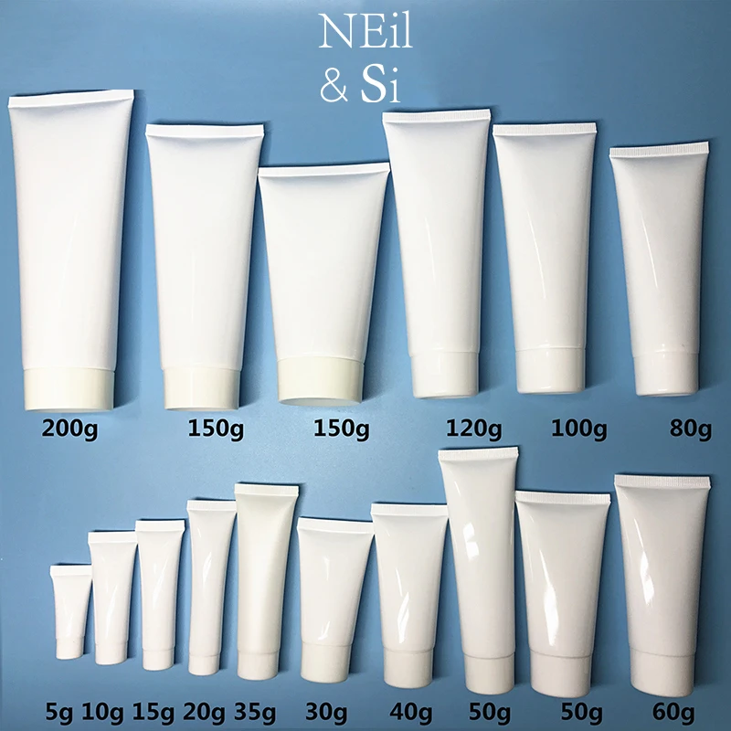 Бесплатная доставка, 5-200 мл, белая пластиковая мягкая бутылка, косметический крем для лица, пустая отжимная трубка, шампунь, лосьон, многоразовые бутылочки