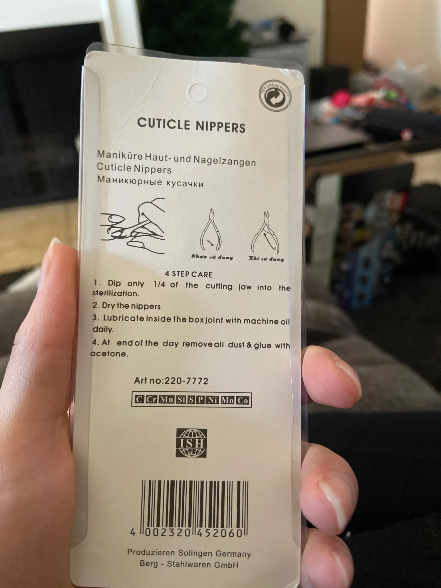 Продукт соответствует описанию, но не хорошо закрывается и только режет основание; Не кончик, это то, что больше всего интересует кутикулы и маленькие гранулы вокруг ногтей. Я не рекомендую его.