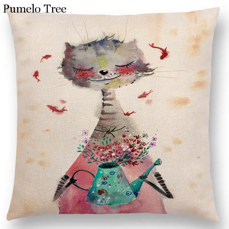 Горячая Распродажа Смешные акварельные большие маленькие глаза животные кошка Медведь Сова фантазия переплетение Красочные Звезды счастливая жизнь Подушка диванная подушка