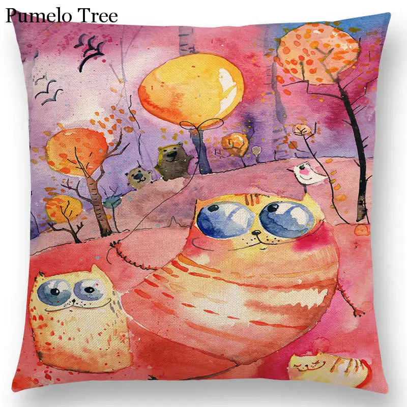 Горячая Распродажа Смешные акварельные большие маленькие глаза животные кошка Рыба Медведь пчела собака лиса сова кролик подушка диванная подушка