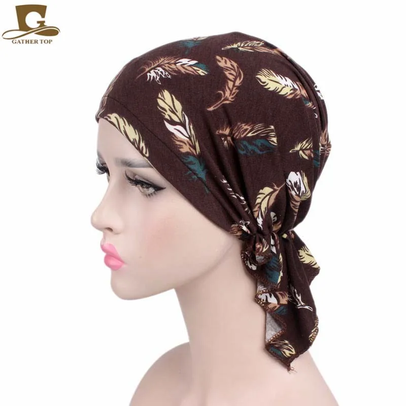 Головной убор в мусульманском стиле с предварительно привязанным рисунком, Женская Бандана с цветочным принтом, мягкие головные уборы, Кепка для выпадения волос, Кепка для рака
