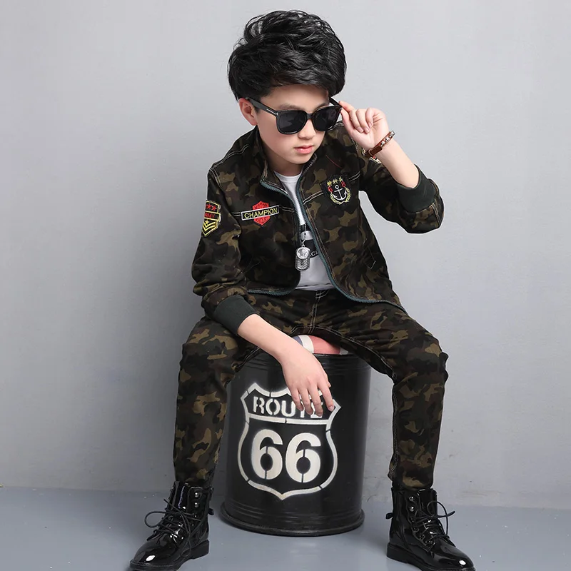 Спортивный костюм из 2 предметов, камуфляжный хлопковый костюм с длинным рукавом и штанами для мальчиков на весну, 100%, 2021