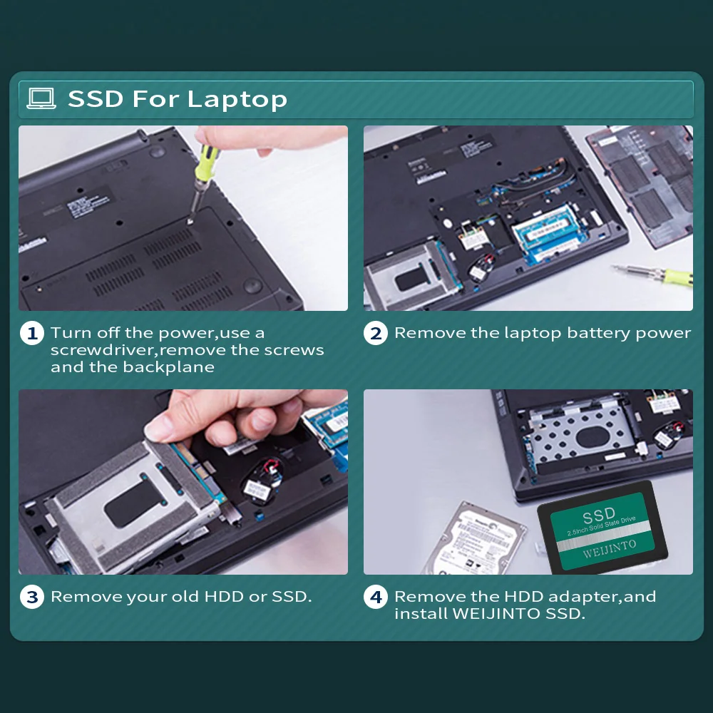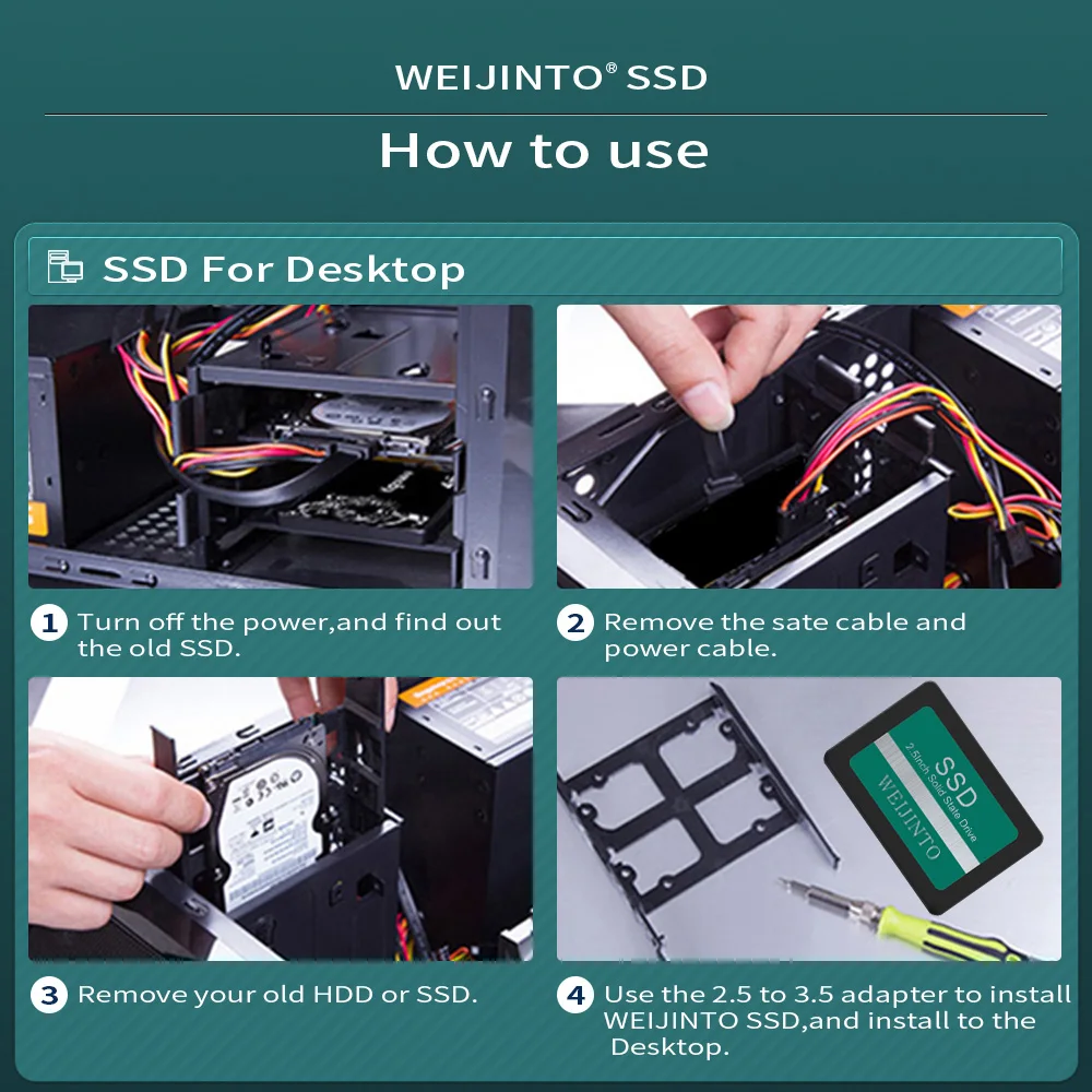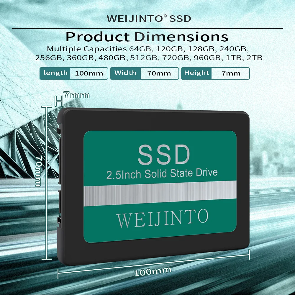WEIJINTO SSD 120 ГБ, 240 ГБ, 128 ГБ, 256 ГБ, 512 ГБ, 480 ГБ, 960 ГБ, 360 гб, 2,5 дюйма, 500 Гб, 720 ГБ, 960 ГБ, ТБ, Внутренний твердотельный накопитель для ноутбука
