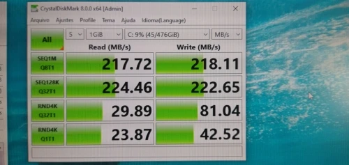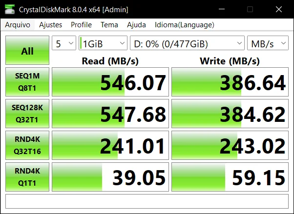 Заказ прибыл очень быстро в Бразилию. Уже установлен SSD на старом компьютере и работает быстрее. Не достигло 500 в чтении, но после того, как я проверю, нужна ли корректировка в ПК. Чем больше, тем лучше работает продукт.