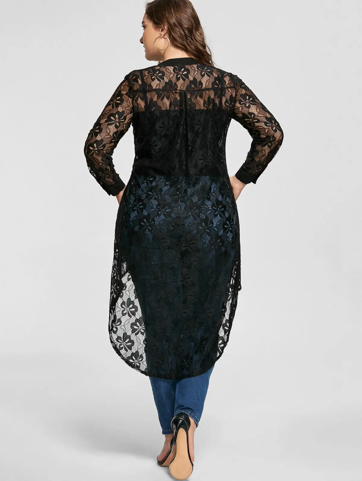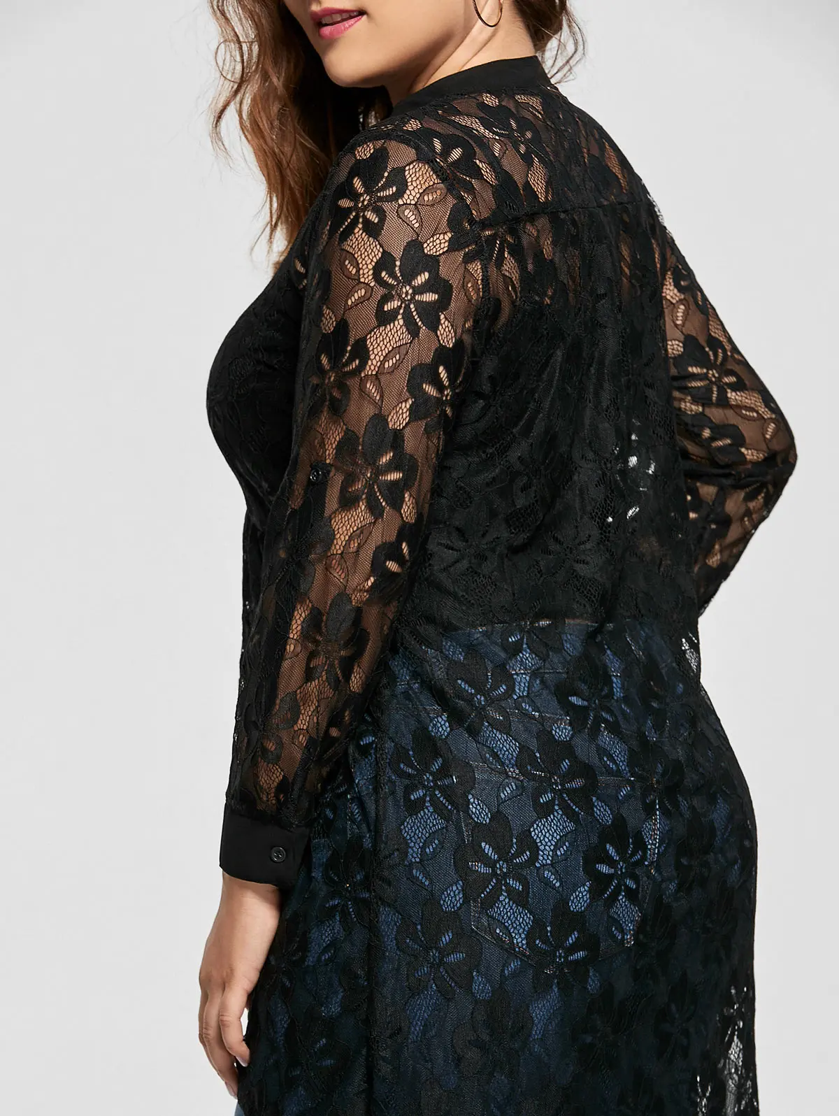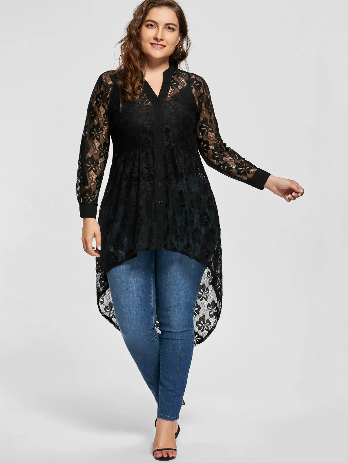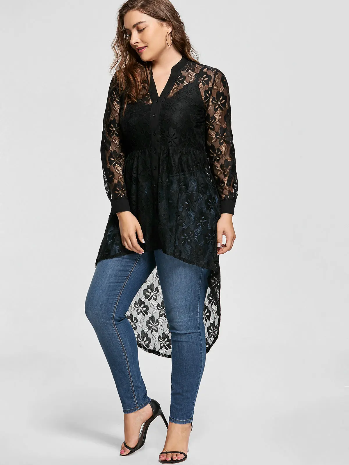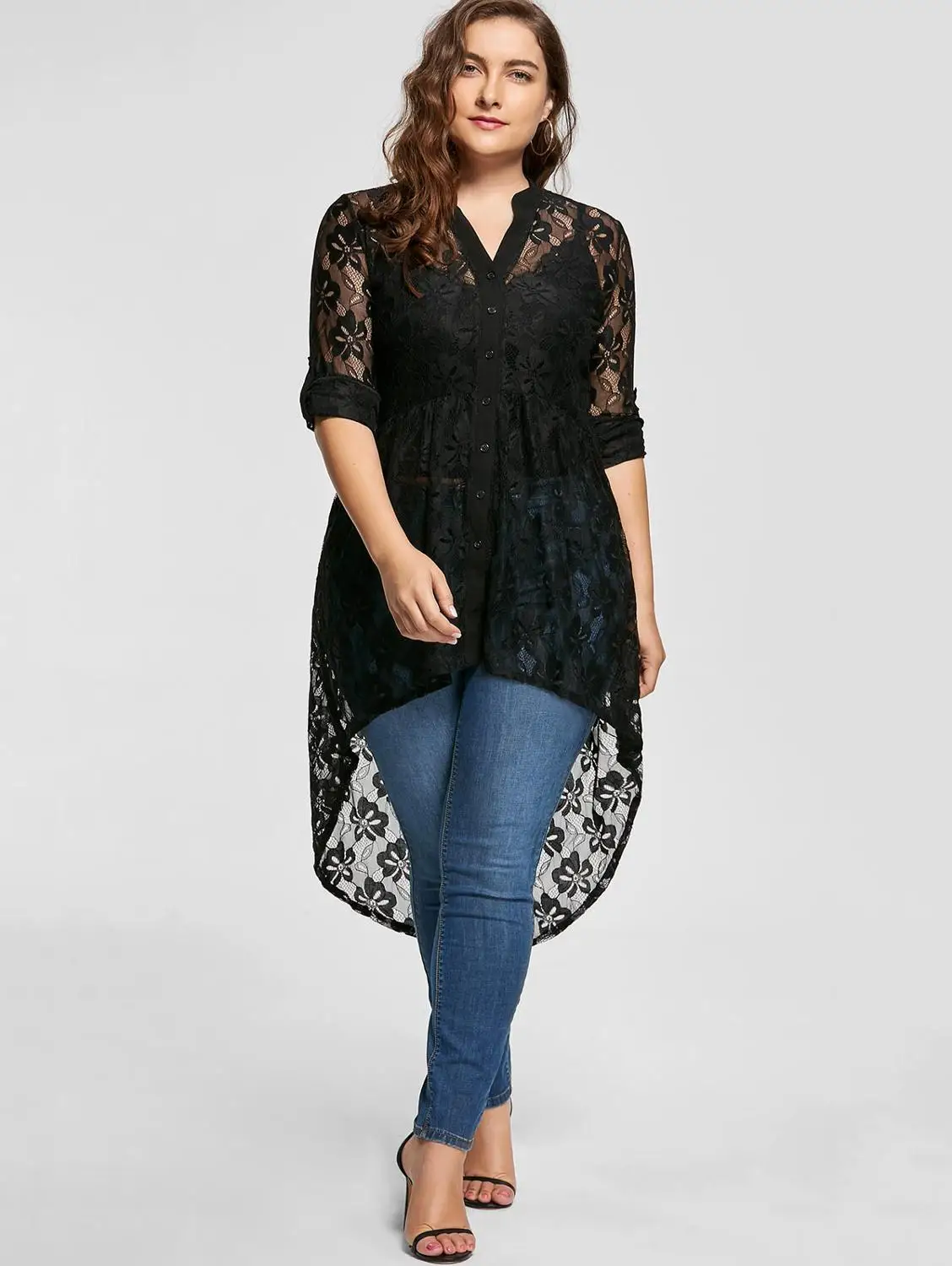 Wipalo Кружевная туника на пуговицах большого размера с длинным рукавом, кружевная рубашка, блуза, размер 5XL