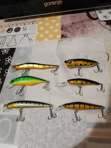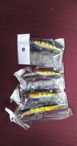 Супер по цене, быстрая доставка (8 лет во Франции) в полиэтиленовых пакетах много приманки очень классные, очень острые Крючки, может потребоваться дополнительный слой лака для удерживания краски приманки в течение длительного времени.