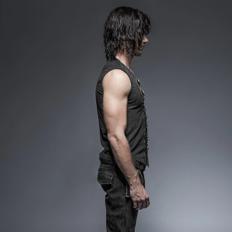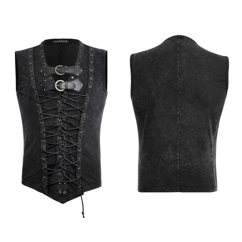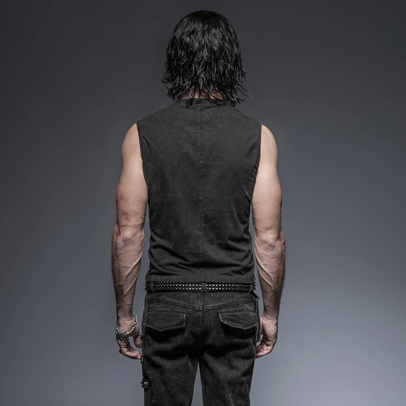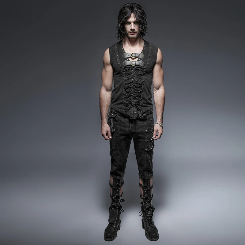Панк-Рейв черный панк-рок хлопок кожаный ремень без рукавов мужские майки стимпанк Повседневный жилет готические Майки Топы тело повседневные