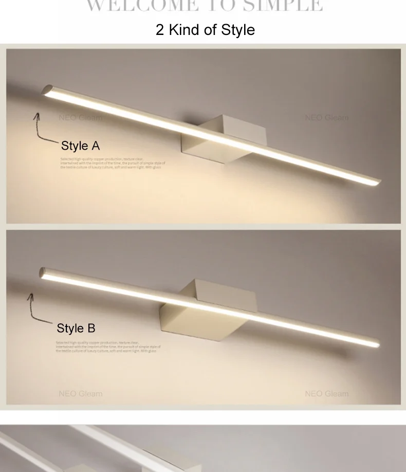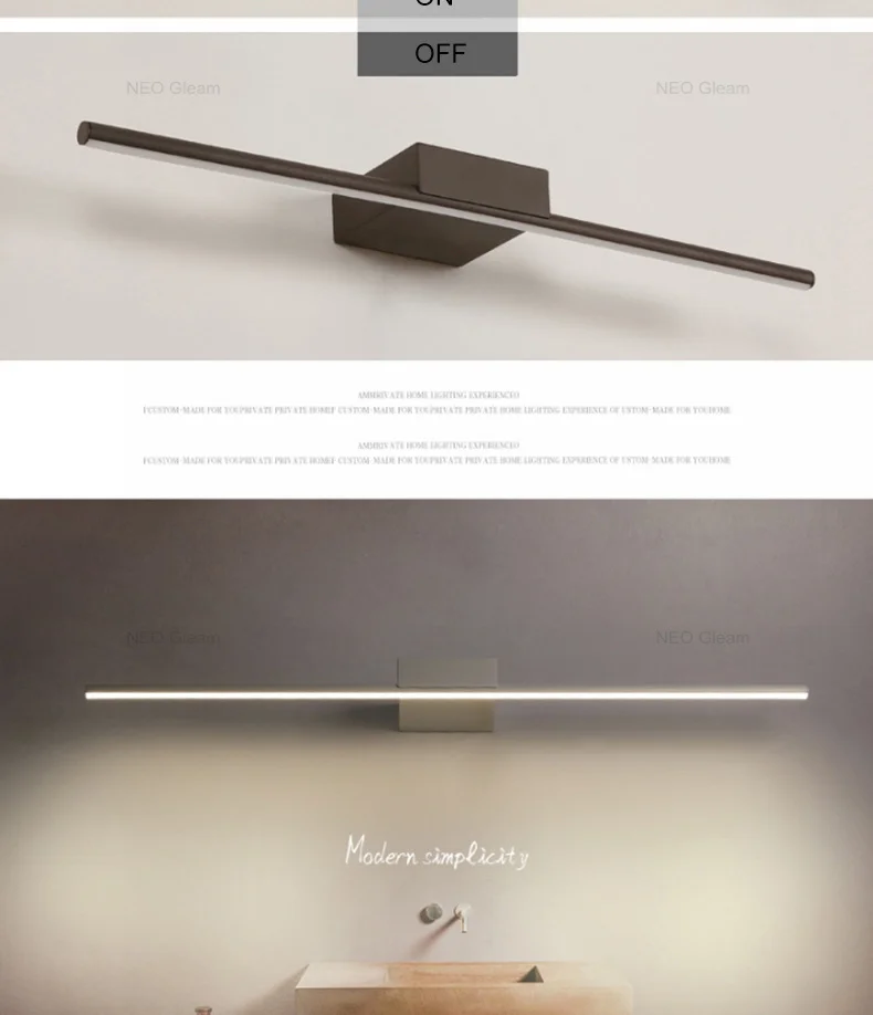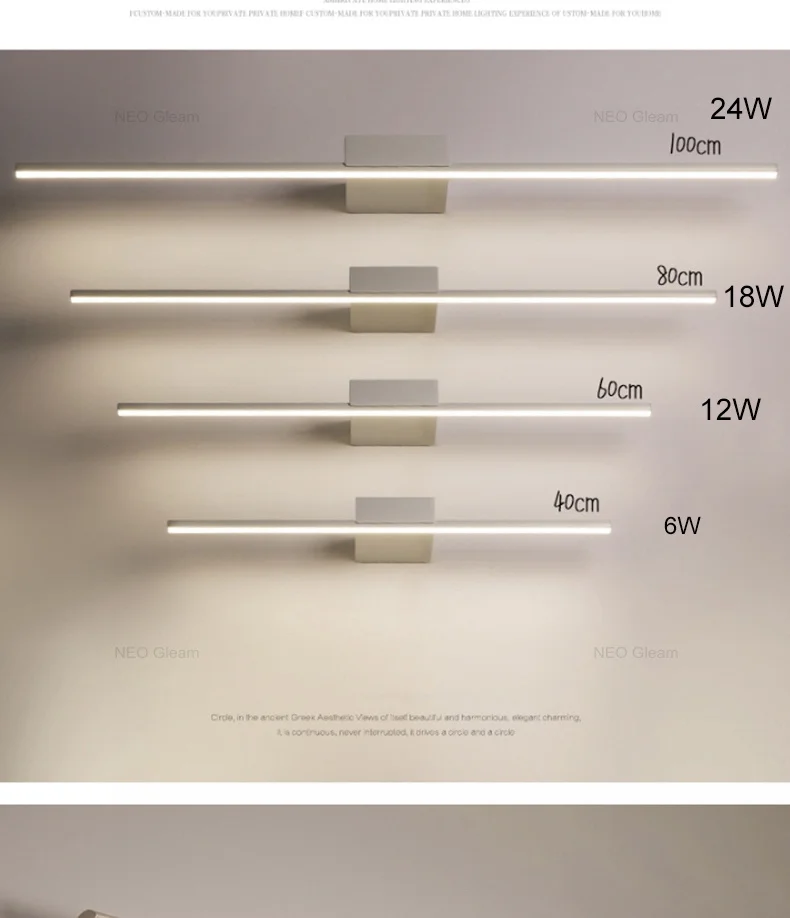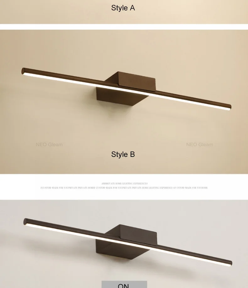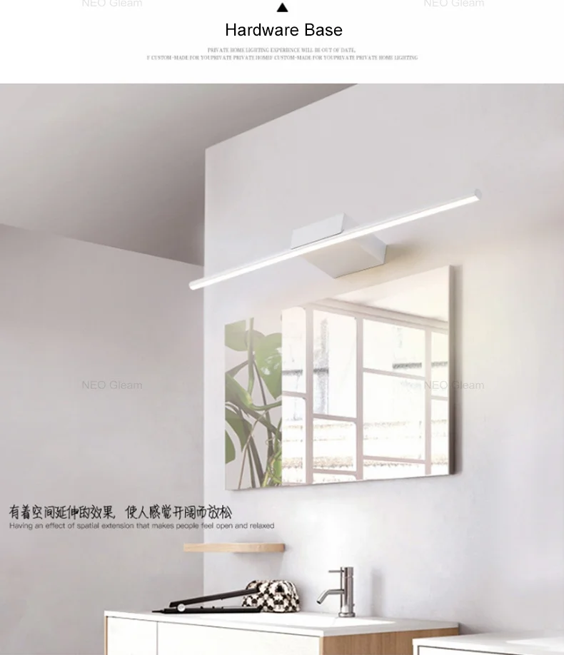 Противотуманные светодиодные зеркальные светильники NEO Gleam, черныебелые, 0,4-1,2 м, противотуманные, для туалетного столика, ванной комнаты