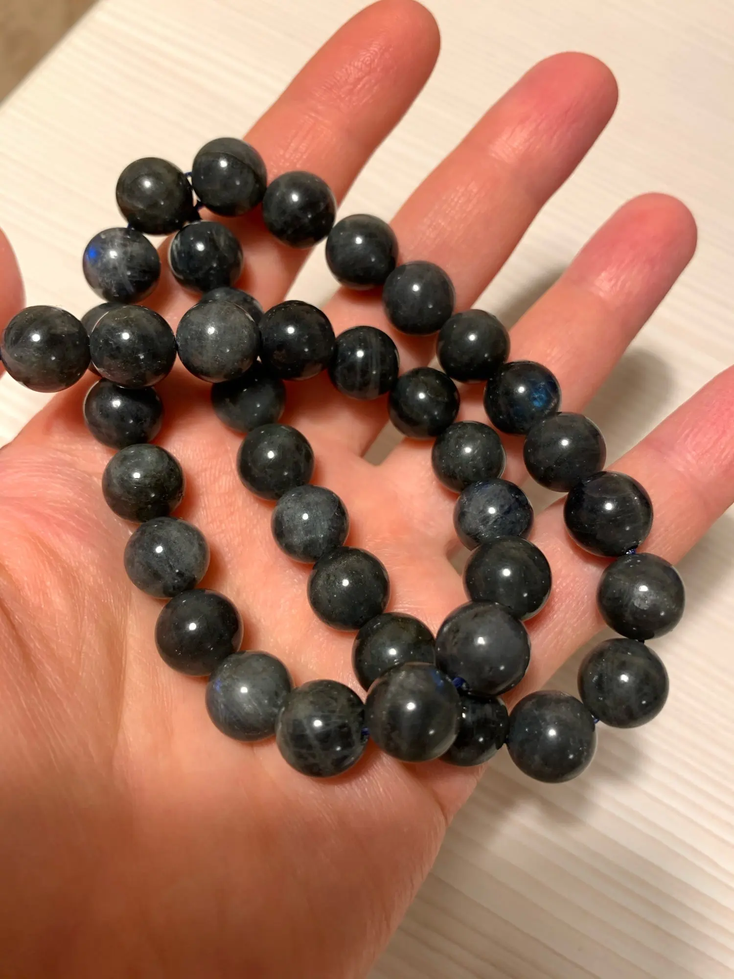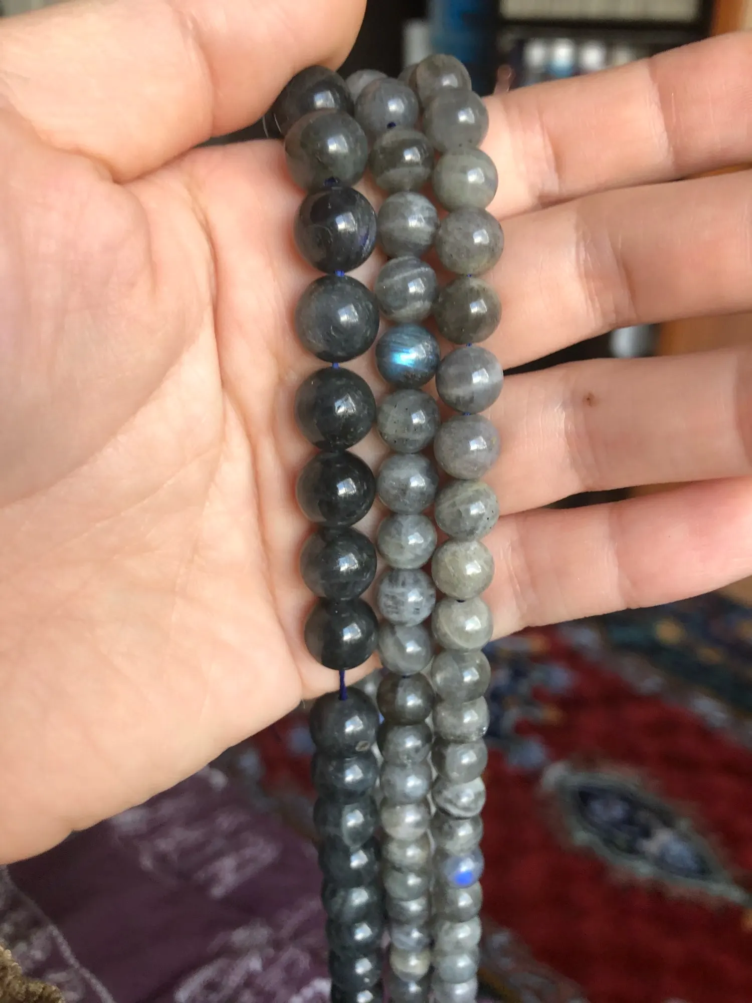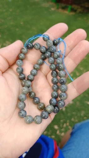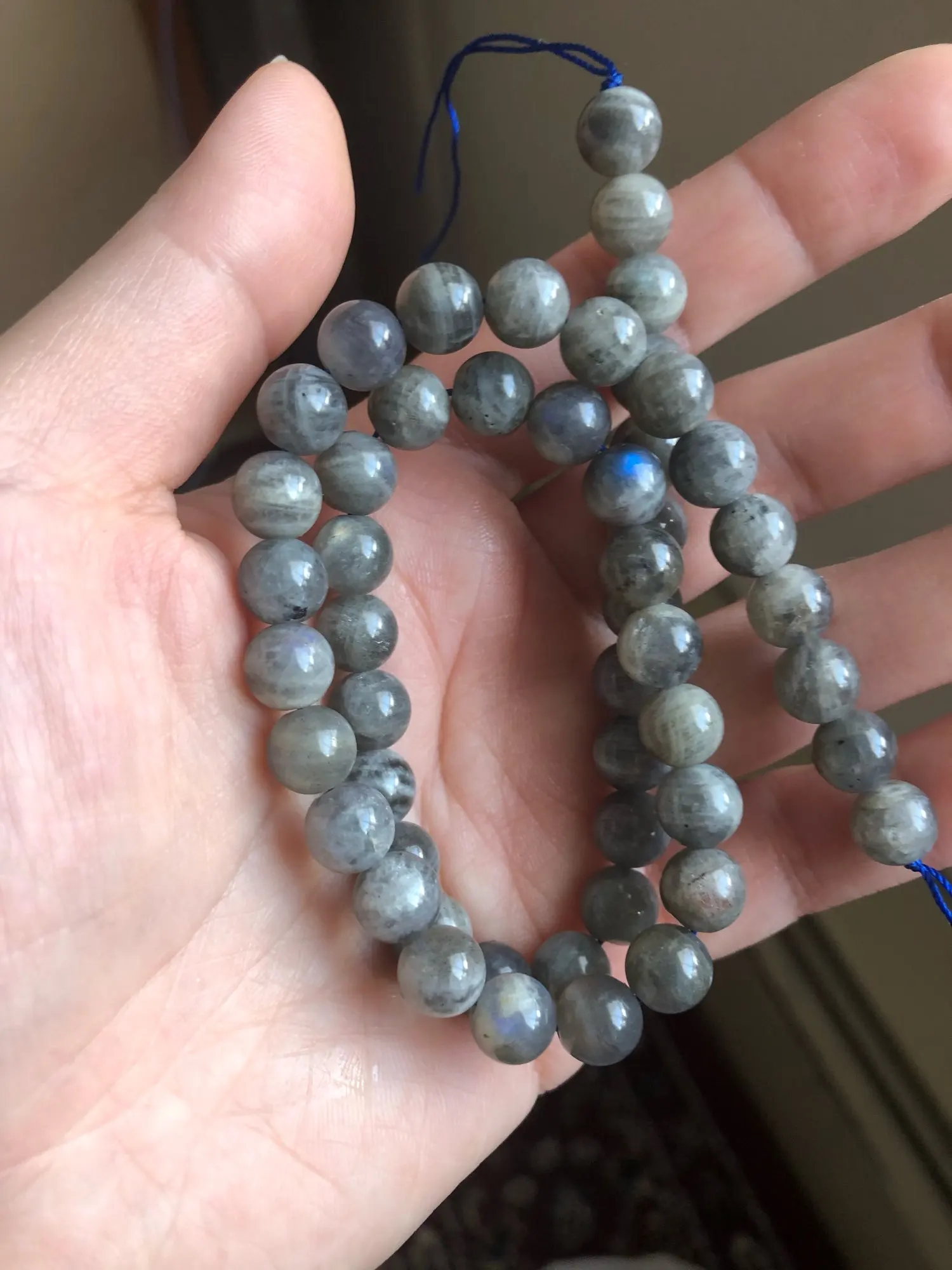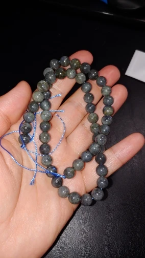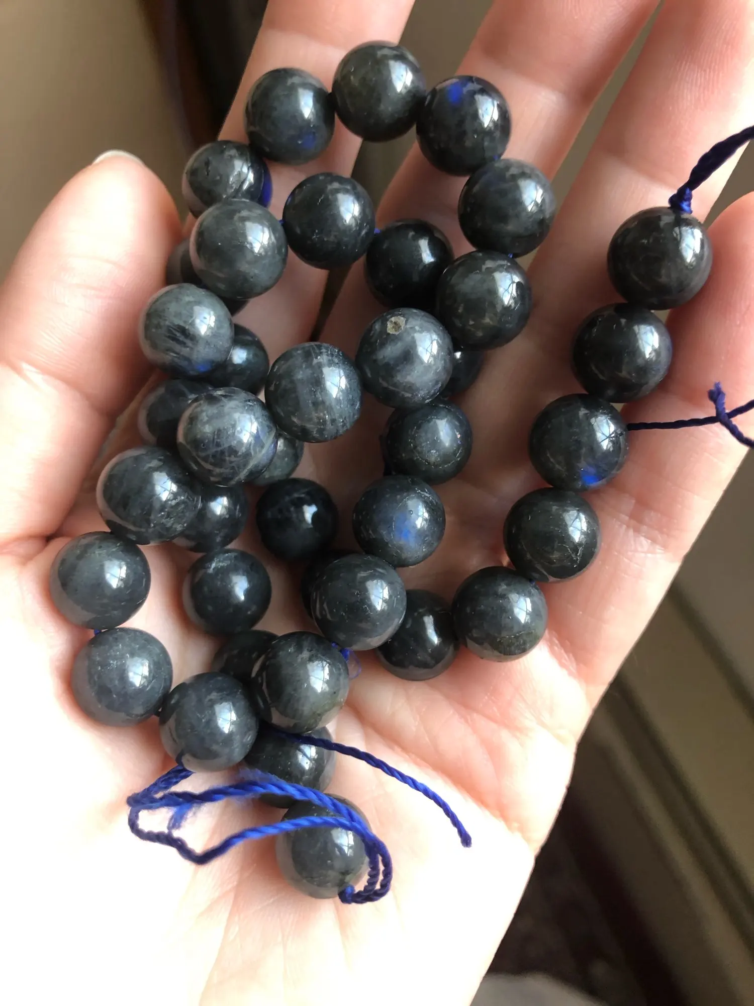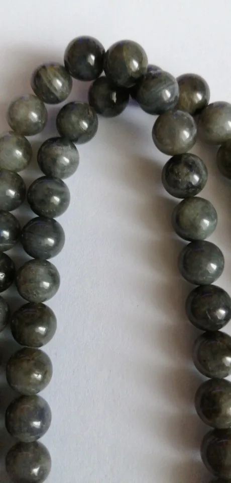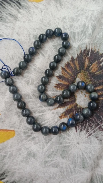 Камни темнее, чем на фото продавца. Иризация слабая и тоже отличается от той, что показана на фото продавца. На нитке было 39 бусин. Честно говоря, даже и не знаю что думать по поводу натуральности камня, так как у меня дома есть 100 процентный натуральный лабрадор, купленный у геологов, и он холоднее, чем эти горошины. Продавцу писала, спрашивала натуральные ли камни, он отписал, что натуральные. Также я просила отправить хорошие камни, а я бы за это оставила ему хороший отзыв. Общался в принципе приветливо. Но в целом, наверное, я немного расстроилась из-за камней, так как за 13 долларов я ожидала увидеть лабрадор более высокого качества, как на фото минимум. Даже не знаю буду ли заказывать ещё у этого продавца. Дождусь ещё обсидиана, который купила у него же и потом сделаю выводы. Возможно, дополню позже отзыв, сделаю фото при дневном свете.