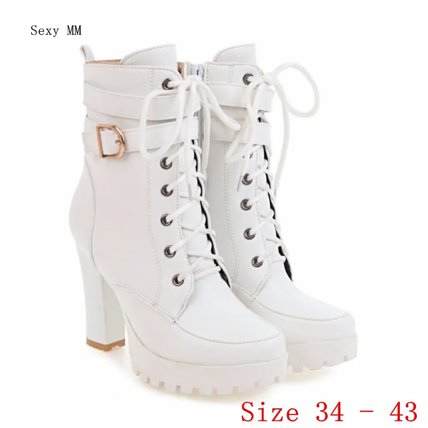 Женские ботильоны на платформе, демисезонные полусапожки на тонком высоком каблуке, размера плюс, 34-40, 41, 42, 43