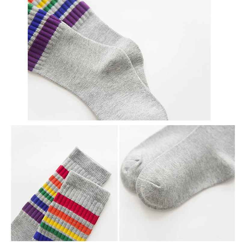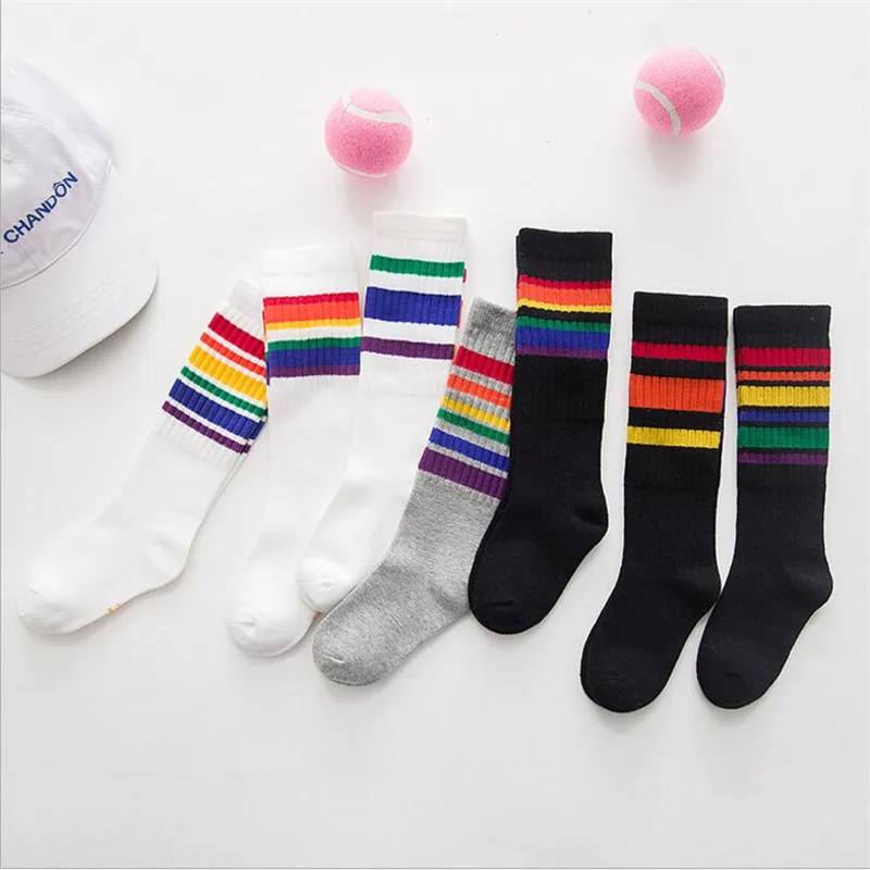 INS/Лидер продаж, носки для малышей хлопковые детские спортивные носки для девочек и мальчиков, унисекс, для малышей от 0 до 10 лет, детские носки в радужную полоску