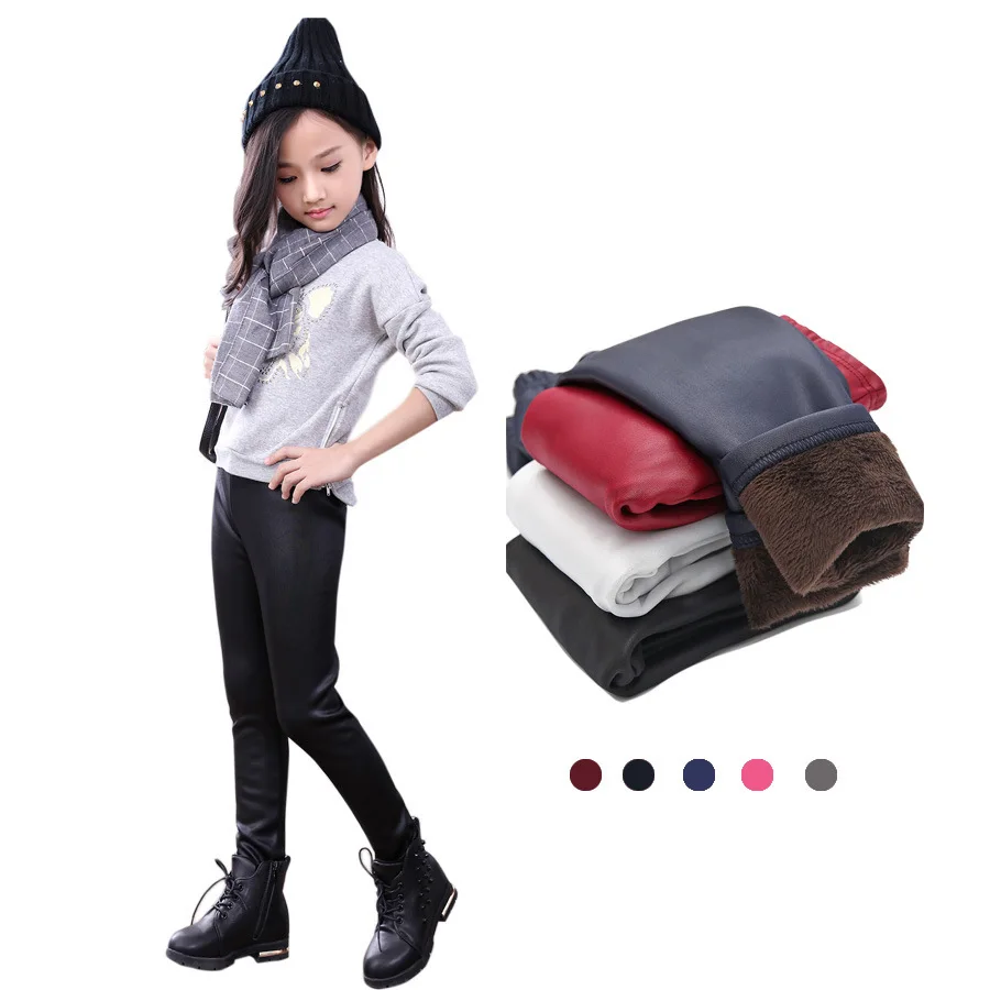 Леггинсы детские из искусственной кожи, осенне-зимние, красные