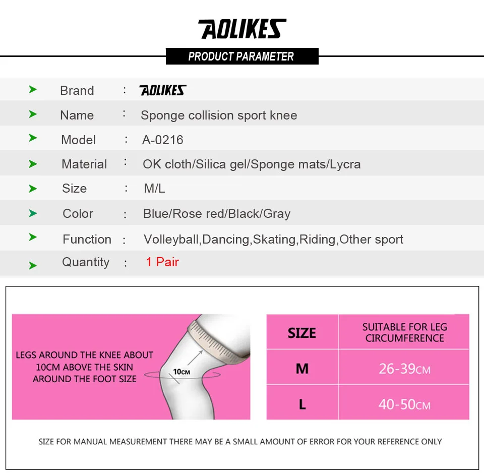 Наколенники AOLIKES 2 шт.лот для игры в волейбол, толстая губка, спортивные наколенники для баскетбола, танцев, joelheira rodilleras Protector