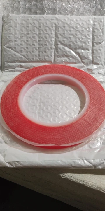 Товар прибыл менее чем через месяц, это действительно быстро. Товар точно соответствует описанию. Липкая часть с обеих сторон прочная, а лента полностью прозрачная. Я очень доволен покупкой. Я рекомендую его и рекомендую продавцу.